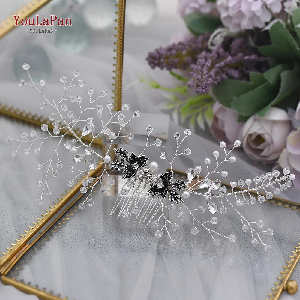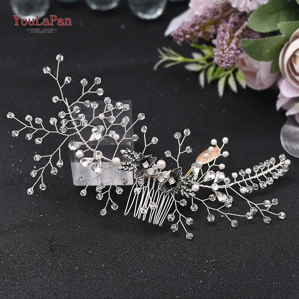 Расческа для волос с цветочным рисунком TOPQUEEN, свадебные расчески, аксессуары для волос, заколки для волос с кристаллами, повязка на голову, свадебные аксессуары для волос HP02