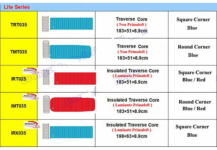PrimaLoft eco синтетический усиленный поперечный сердечник. 2 различных класса PrimaLoft 100 г/м2 и 133 г/м2-обеспечивает дополнительное тепло для основного тела, а также вес бритья для головы и ног. Благодаря толстые 3,5 "(8,9 см) изоляционный слой для окончательной поддержки и создадут ощущение комфорта. Продольная конструкция воздушного сердечника обеспечивает лучшую поддержку по сравнению с традиционным вертикальным сердечником из-за превосходного количества отдельных воздушных камер (не сенсорный звук больше). Инфракрасная Светоотражающая технология добавила много тепла. Отличный компаньон для сна на снежной земле для его непревзойденной толщины. Работает с «сухим насосом» для быстрого надувания.