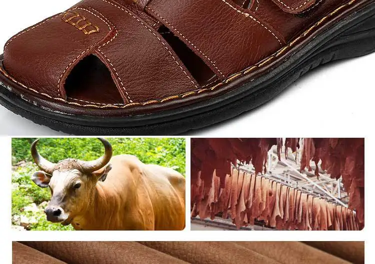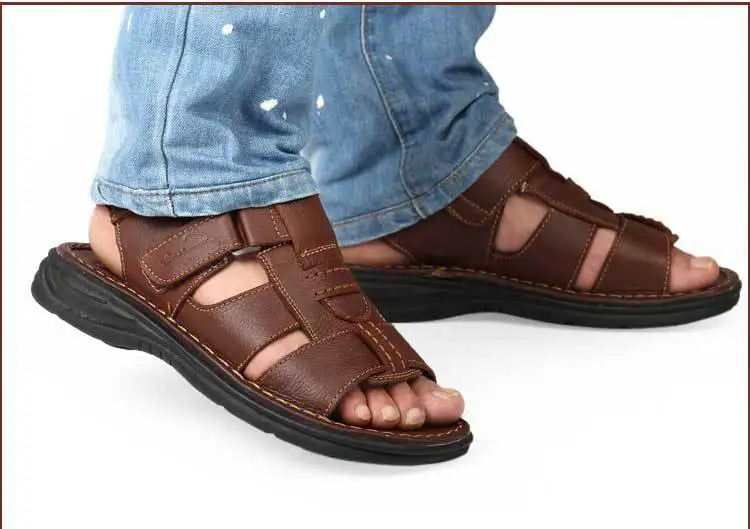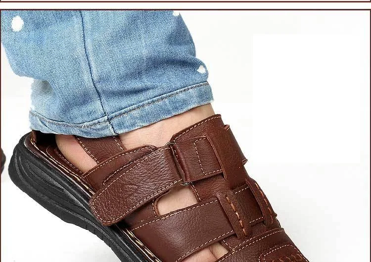 Высокое качество мужские летние сандалии на каблуке кожаные с натуральным