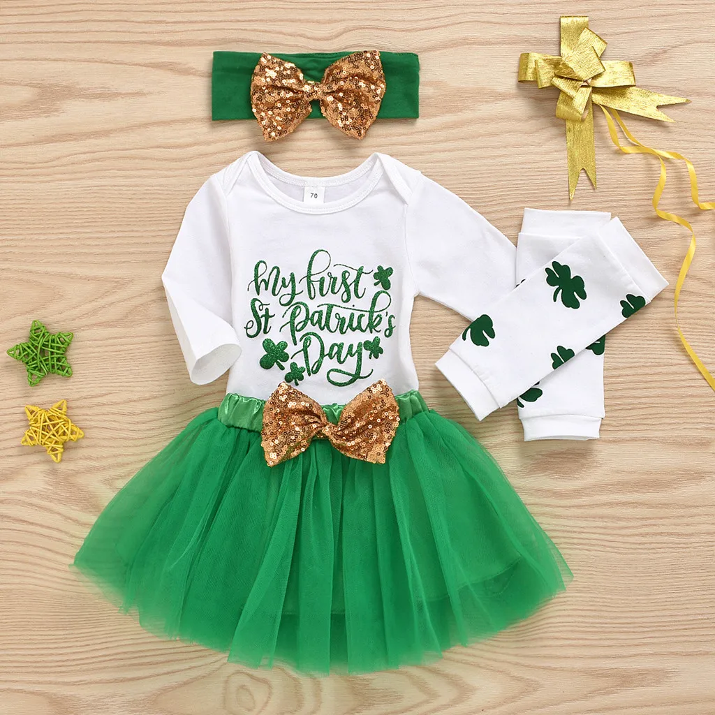 Детский комбинезон на День Святого Патрика для новорожденных девочек; Юбка-пачка; Гетры; Комплекты одежды