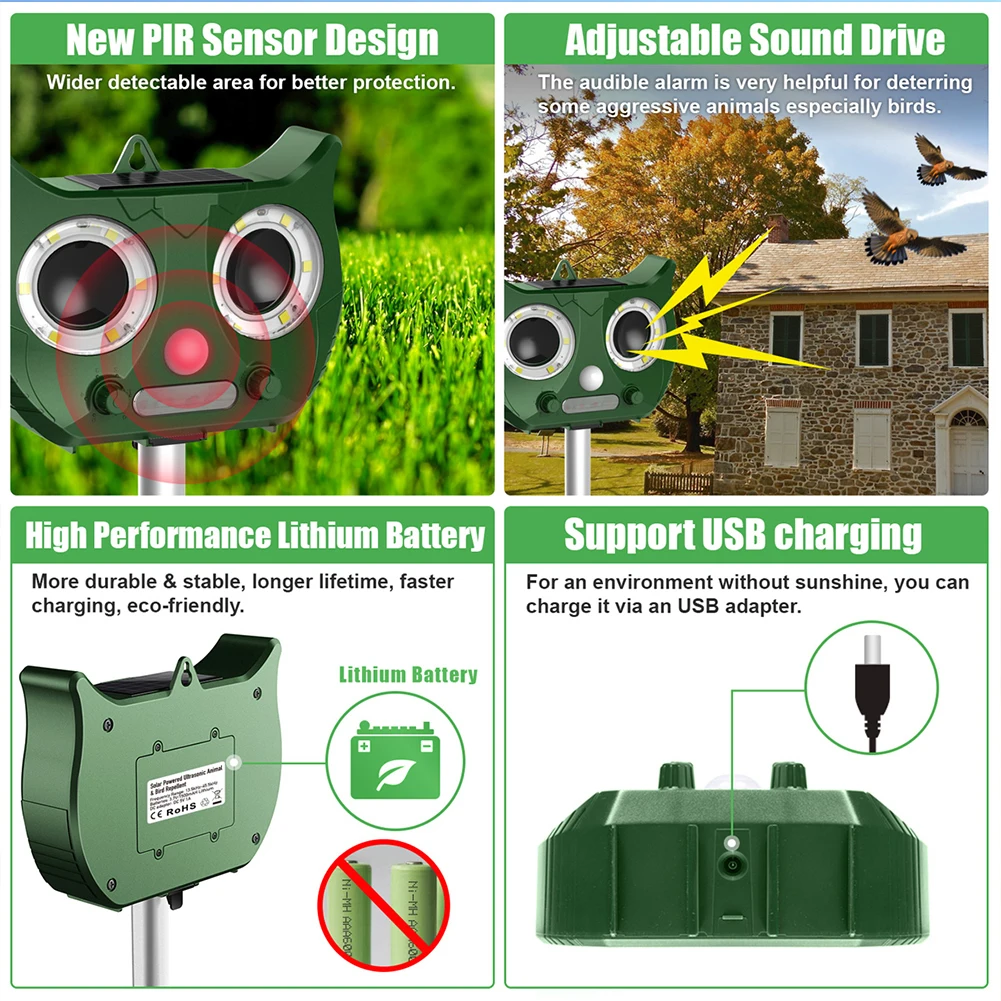 Новый ультразвуковой отпугиватель животных на солнечной батарее, уличный водонепроницаемый инфракрасный датчик, садовая мышь, птица, кошка, собака, лиса, змея, репеллент