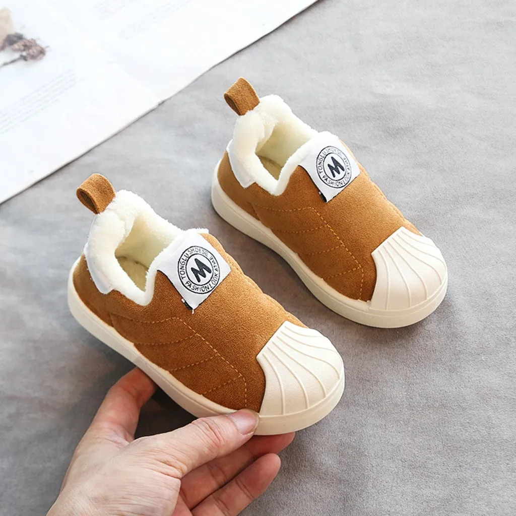 Детская зимняя теплая Повседневная обувь из мягкого флока для маленьких мальчиков и девочек