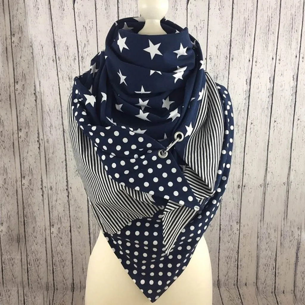 Модные Женские однотонные повседневные теплые шарфы на пуговицах с принтом звезд