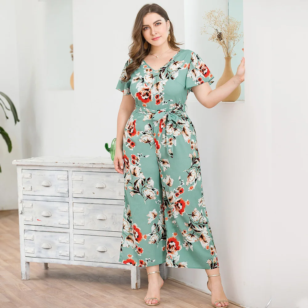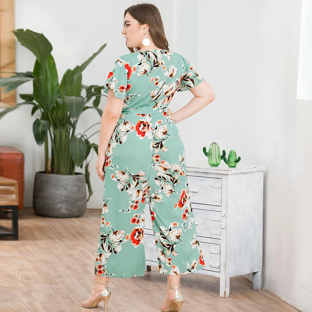Wipalo 2020 размера плюс широкие брюки комбинезон летний укороченный с высокой талией Короткий рукав v-образный вырез цветочный принт комбинезон Повседневная Женская одежда