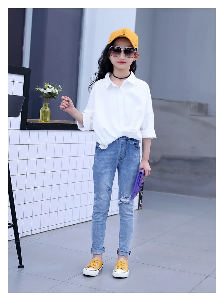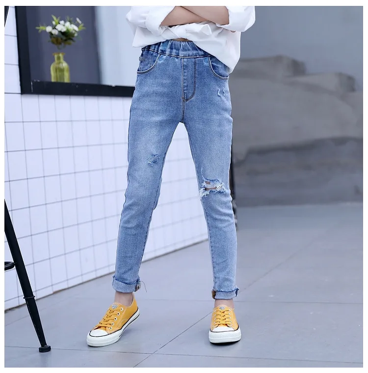 1 однотонные рваные джинсы для девочек-подростков 2 новые весенние 2020 обтягивающие джинсовые брюки 3 Детские однотонные джинсовые штаны со средней талией, джинсовые штаны для маленьких девочек