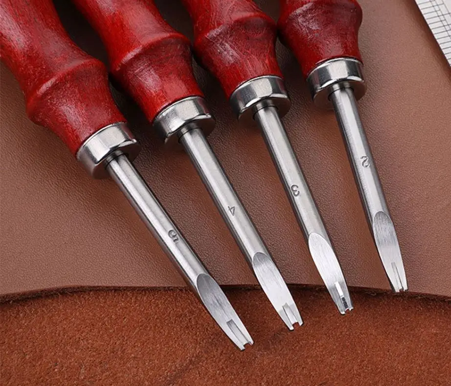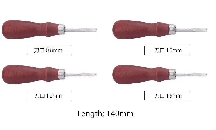 Спецификация: Материал: дерево + сталь Цвет: винно-красный Количество: 1 шт. Размер: 0,8/1/1,2/1,5 мм Длина: 140 мм Посылка включает в себя: 1 x резак для кожаных кромок