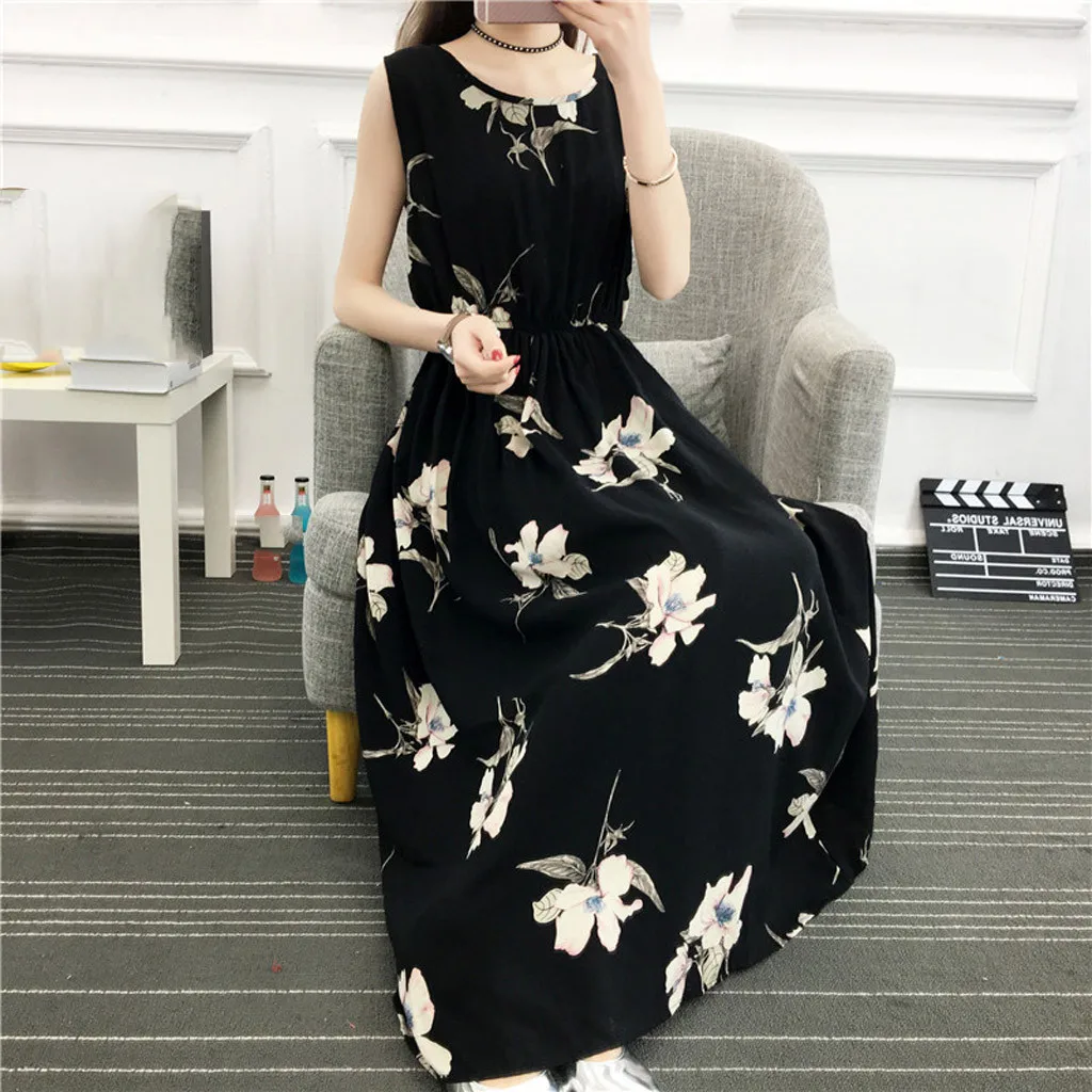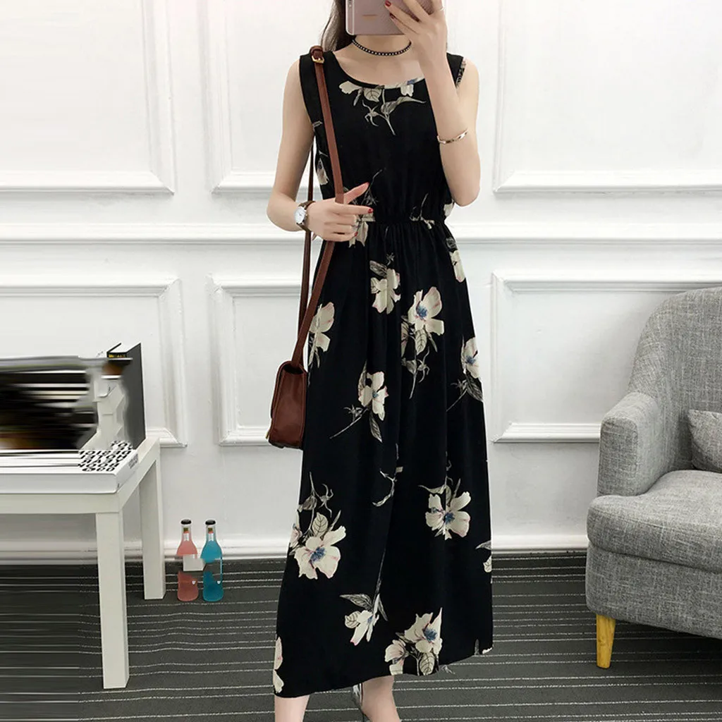 Особенности: винтажный жилет с принтом, круглый вырез, без рукавов, макси-платье, длинное платье, винтажный стиль, платье с запахом, Осеннее и весеннее платье.