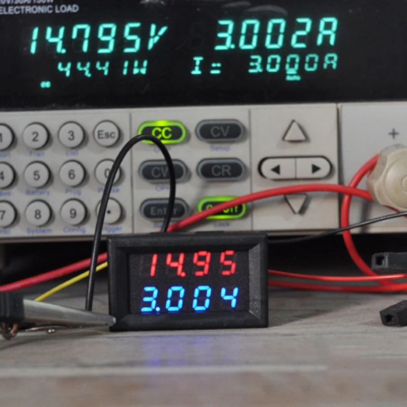 <Четкое чтение: этот элемент четко отображает напряжение и ток одновременно, красный для напряжения, синий для тока.