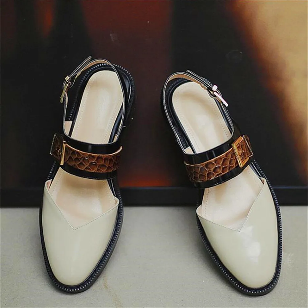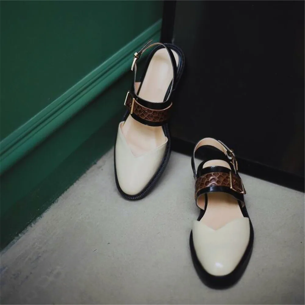 Весенние пикантные Модные Ретро туфли на толстом высоком каблуке Бежевые Белые Черные Ремни с пряжкой круглый носок высокий каблук для женщин