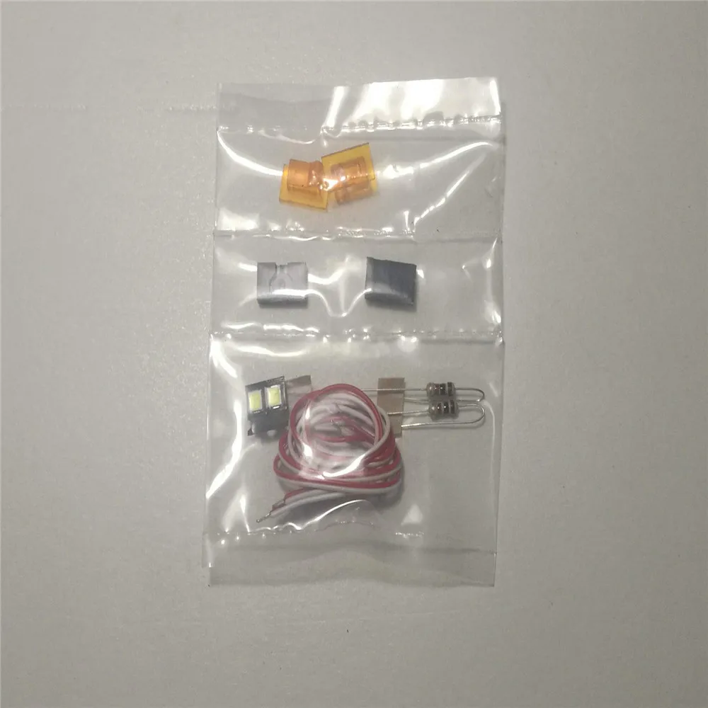 With 2pcs 0.2W LED lights and 2pcs resistors, and the welding wire needs to be soldered by yourself.