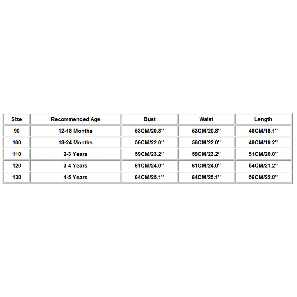 | Размеры | Рекомендуемый возраст | Обхват груди | Обхват талии | Длина |
