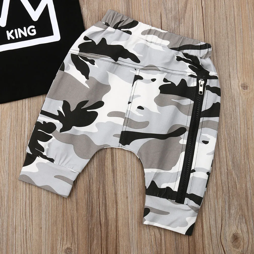 Детская футболка с буквенным принтом для маленьких мальчиков, топы + Камуфляжный комплект с шортами