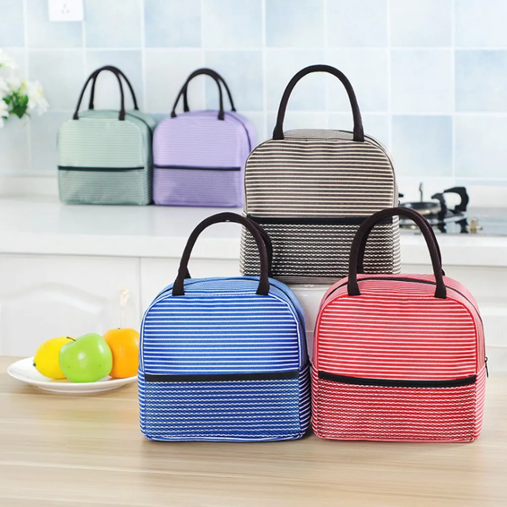 Портативная полосатая сумка для обеда, термохолщовый контейнер для еды, сумка для хранения обеда, сумки