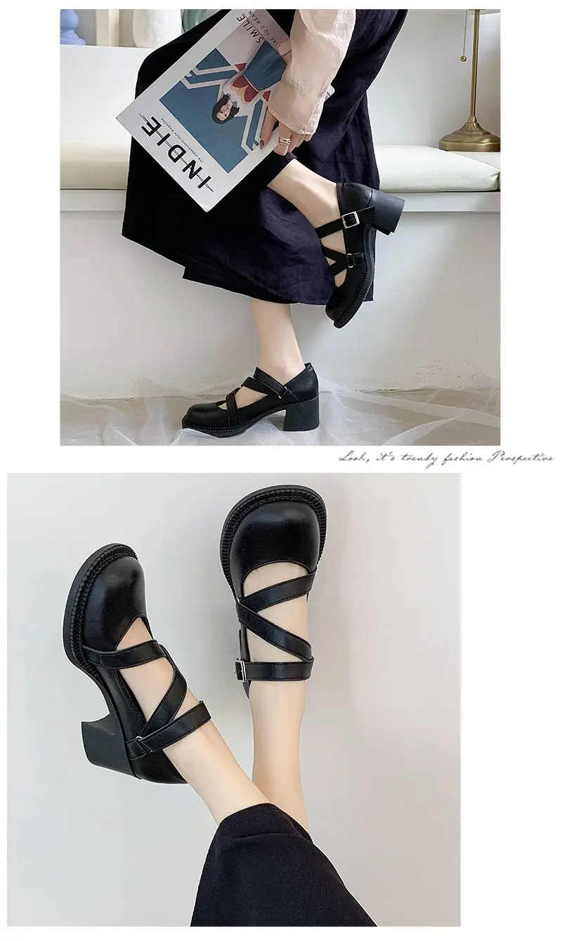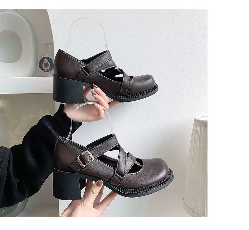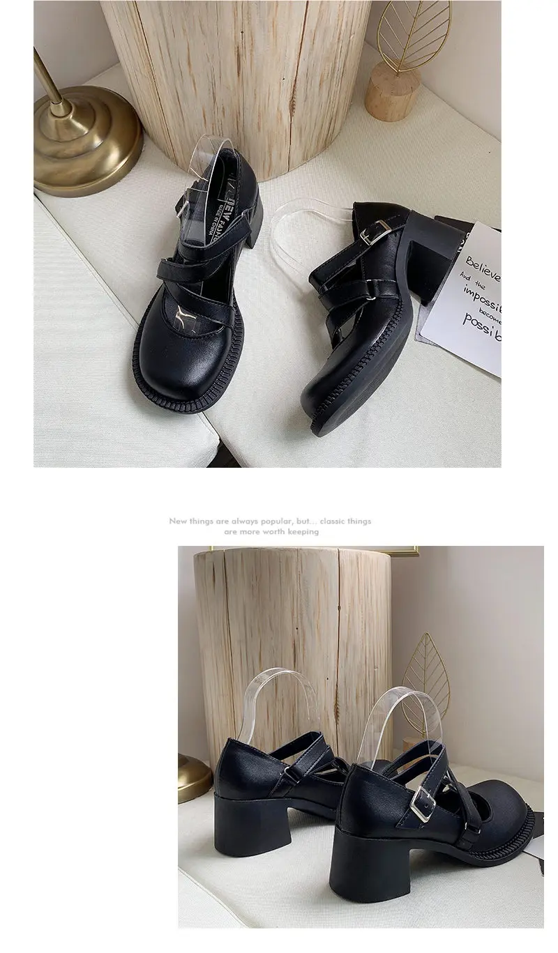 Обувь в стиле панк; женская повседневная обувь на высоком каблуке с пряжкой; женские черные туфли Mary Jane с круглым носком; женские туфли-лодочки; женская обувь на низком каблуке