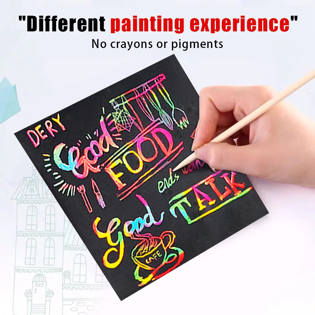 Безопасный и нетоксичный, без нечетных Аромат, без токсичного порошка, поэтому каждый может занять время, чтобы играть, обдумывать, тестировать И готовьтесь к своим шедеврам, наслаждайтесь скретч-артом.