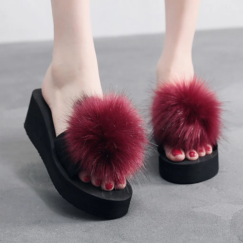 Женская обувь на танкетке; зимние домашние и уличные Нескользящие тапочки; женская домашняя обувь