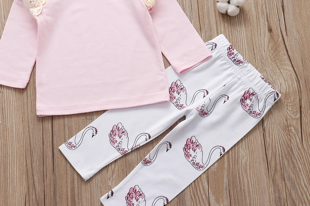Оптовая продажаОдежда для маленьких девочек с изображением маленького лебедя; Розовый топ; Футболка + леггинсы; Комплект из 2 предметов; Хлопковая одежда для маленьких девочек; Детский комбинезон