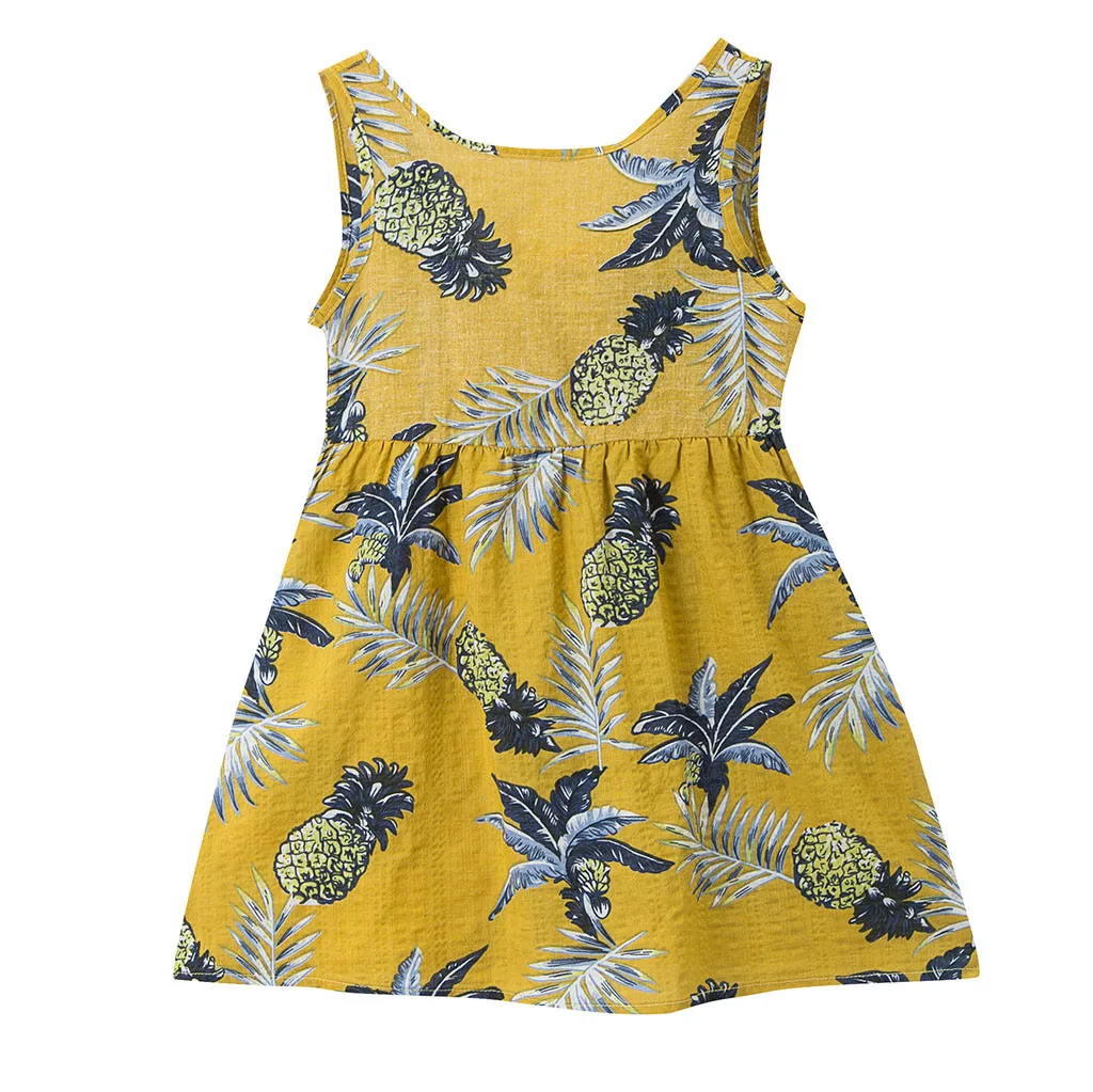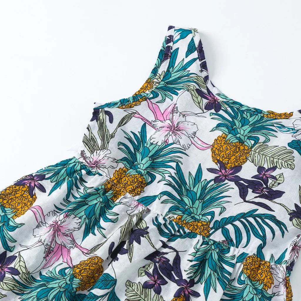 Летнее платье принцессы на бретелях без рукавов с принтом для маленьких девочек