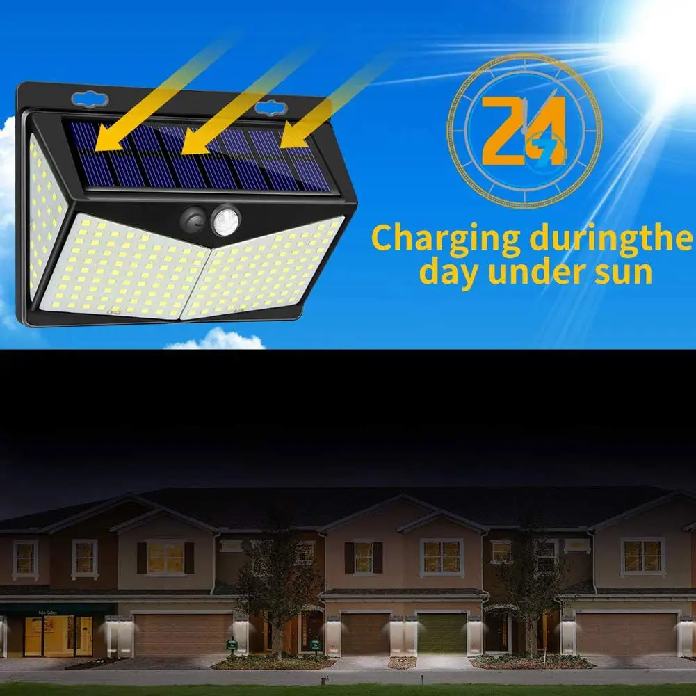 【Супер яркий 208 светодиодный солнечный свет 】: оснащен 208 светодиодными супер яркими солнечными лампами и чипом управления энергией, который ярче, чем другие солнечные огни на рынке. Этот Солнечный наружный датчик движения может обеспечить превосходное освещение до 3600 люменов, что намного ярче и экономичнее, чем другие аналогичные светодиодные солнечные огни.