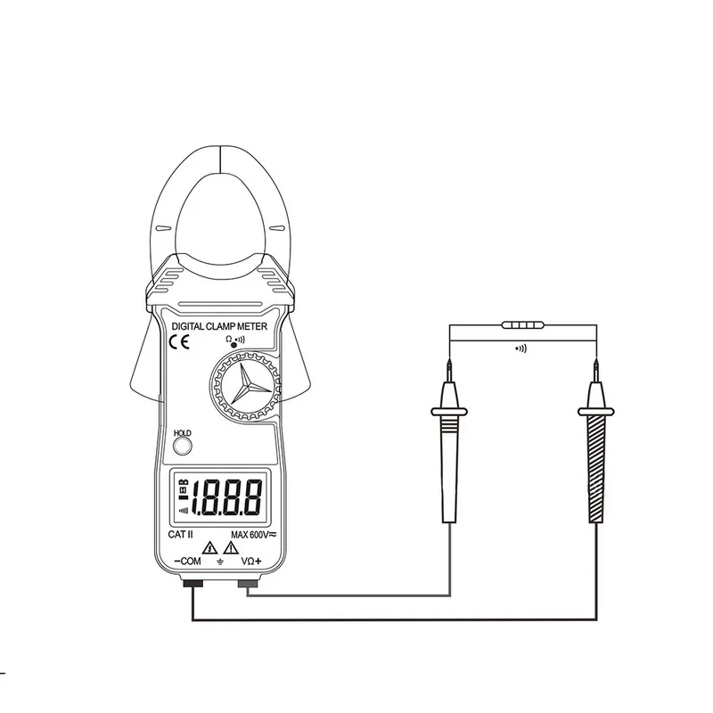 4. Сопротивление: 200Ω-2MΩ ± (0.8% ± 3 dgts)