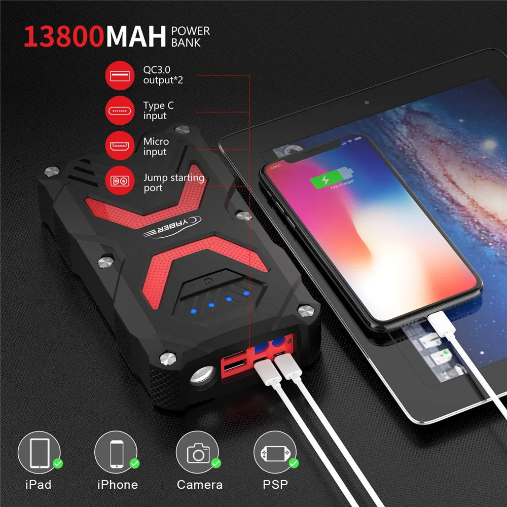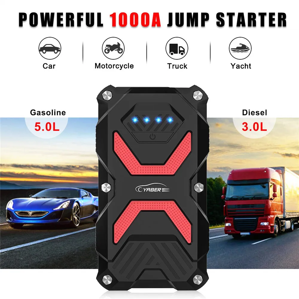 Yaber Jump Starter Peak 1000A Powerful 13800mAh Emergency Car Jump starter Battery Power Bank Auto Booster