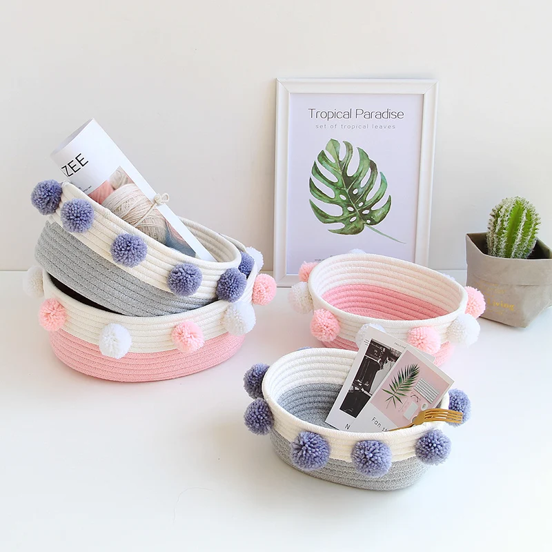 Настольная Косметическая корзина для хранения, японская хлопковая веревка, корзина для игрушек, товары для дома, корзина для хранения различных цветов