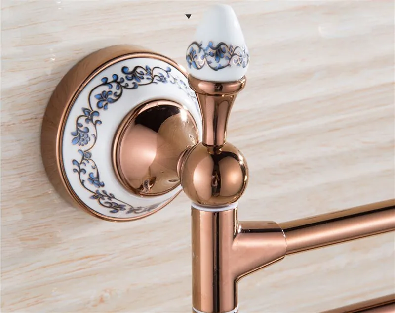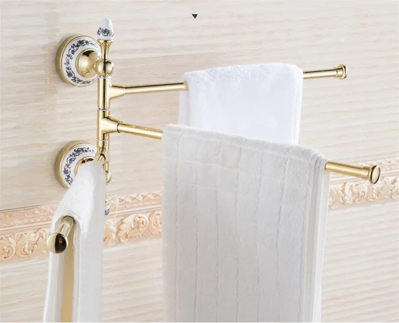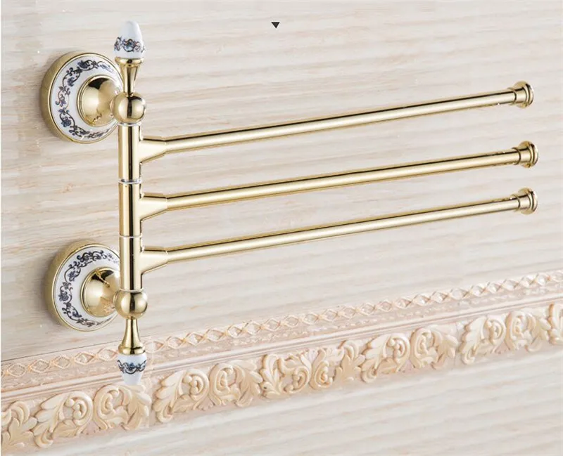 Банное оборудование, латунное складное подвижное вращающееся банное полотенце, банное полотенце, стойка для полотенец, настенное крепление, держатель для полотенец, 3 бара, золото/розовое золото