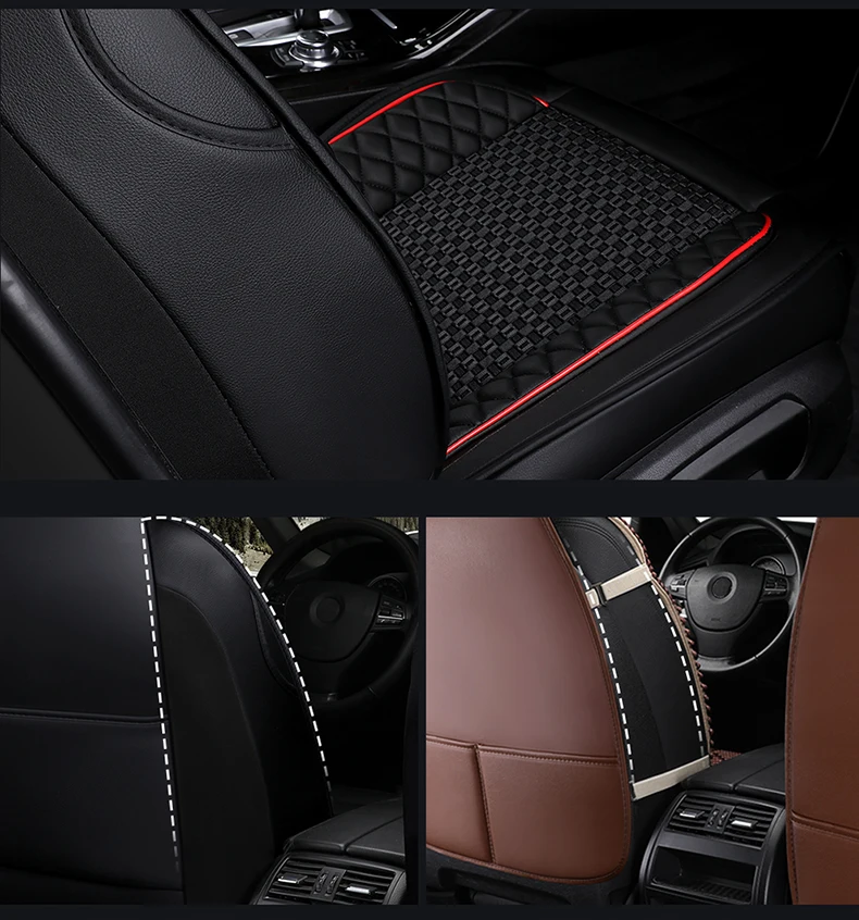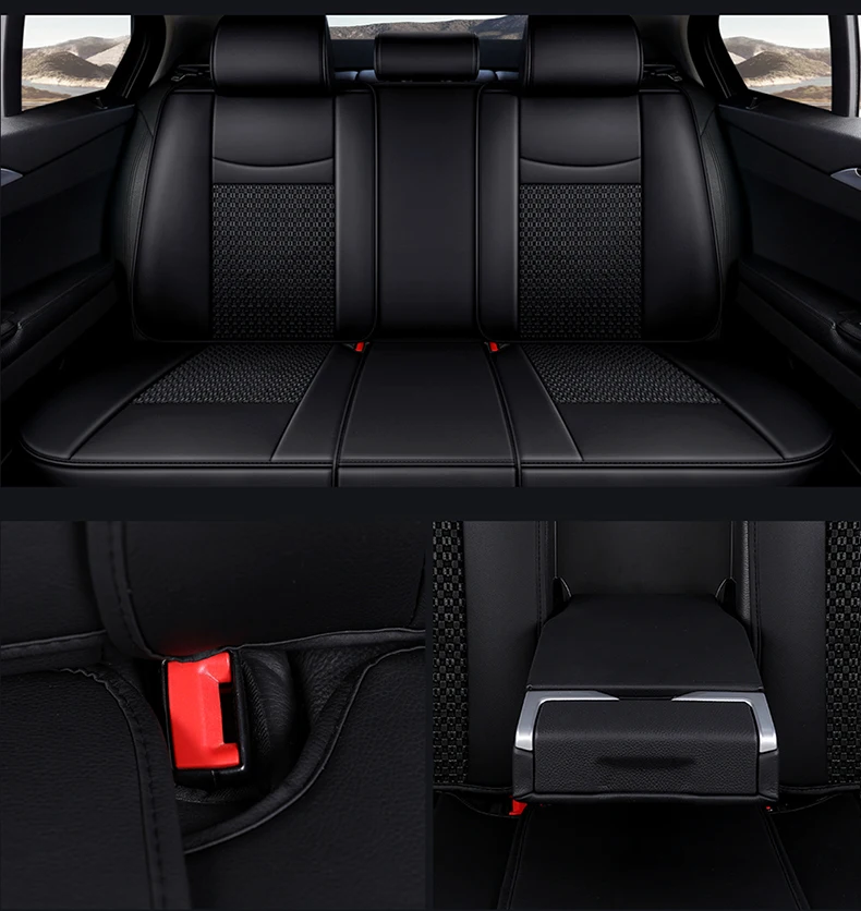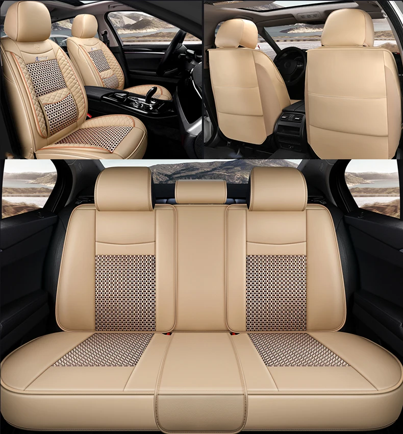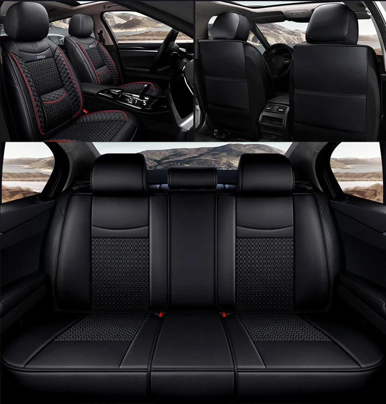 *Description: Material :leather + ice silk +sponge + non-woven fabric + cloth Color: Black /red /beige /coffee Item Choice : Full Seat Cover Set Compatible Vehicles : Universal Fit is Compatible with 99% Vehicles Placement on Vehicle: Front, Rear, Left, Right Special Features:Protect your car Seats from dirt, wear and tear. Luxury version:standard version+2 neck pillows+2 waist pillows