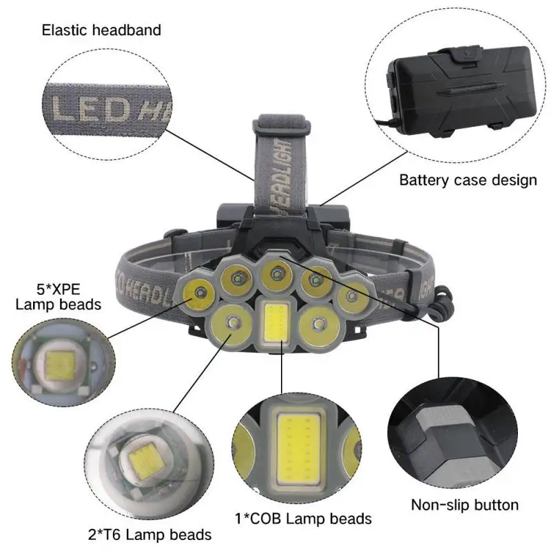 Светильник лампы: 2 * T6 + 5 светодиодный + 1 * COB светодиодный