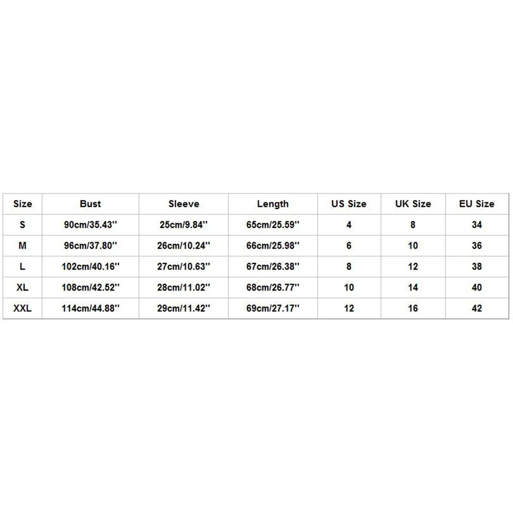 | Size | Bust | Sleeve | Length | US Size | UK Size | EU Size |