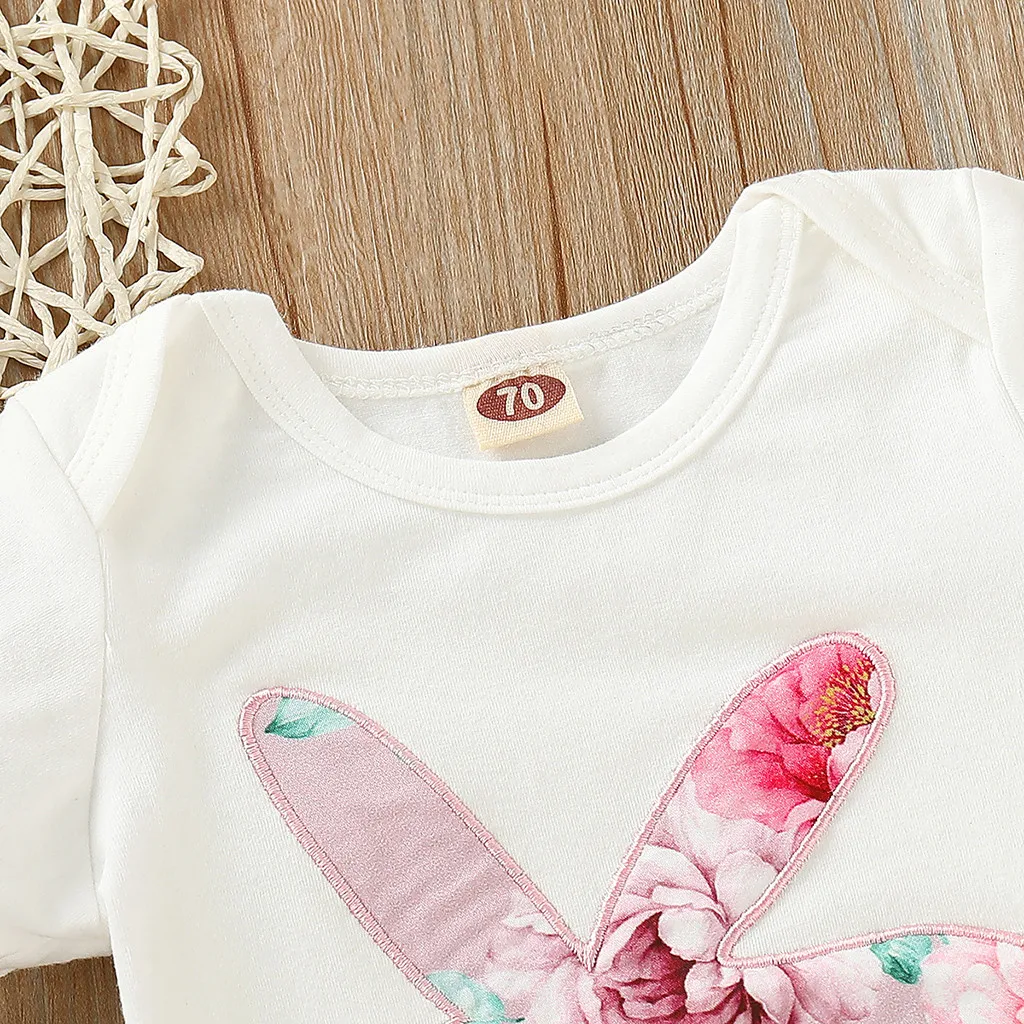 Боди с дизайном «кролик» на Пасху для маленьких девочек + штаны с цветочным принтом
