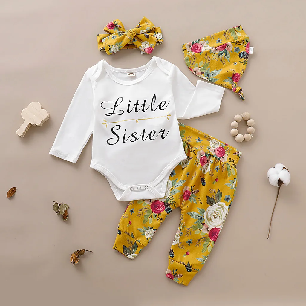 Однотонный комбинезон с оборками для маленьких девочек, боди + штаны с цветочным принтом + повязка на голову