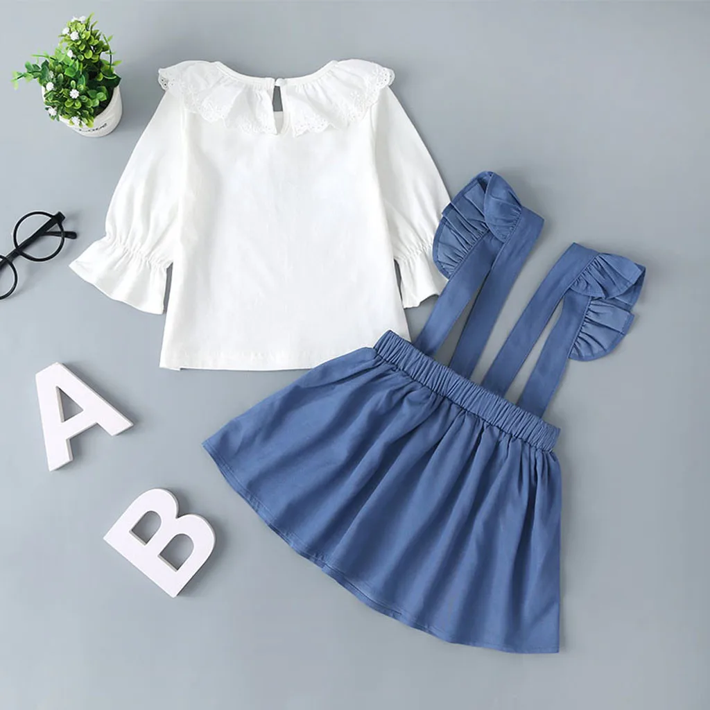 Комбинезон с оборками для новорожденных девочек + одноцветные Подтяжки комплект юбки