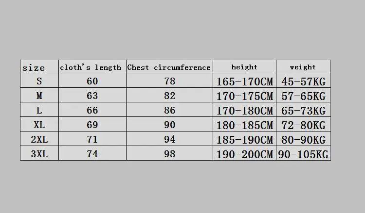 Таблица размеров