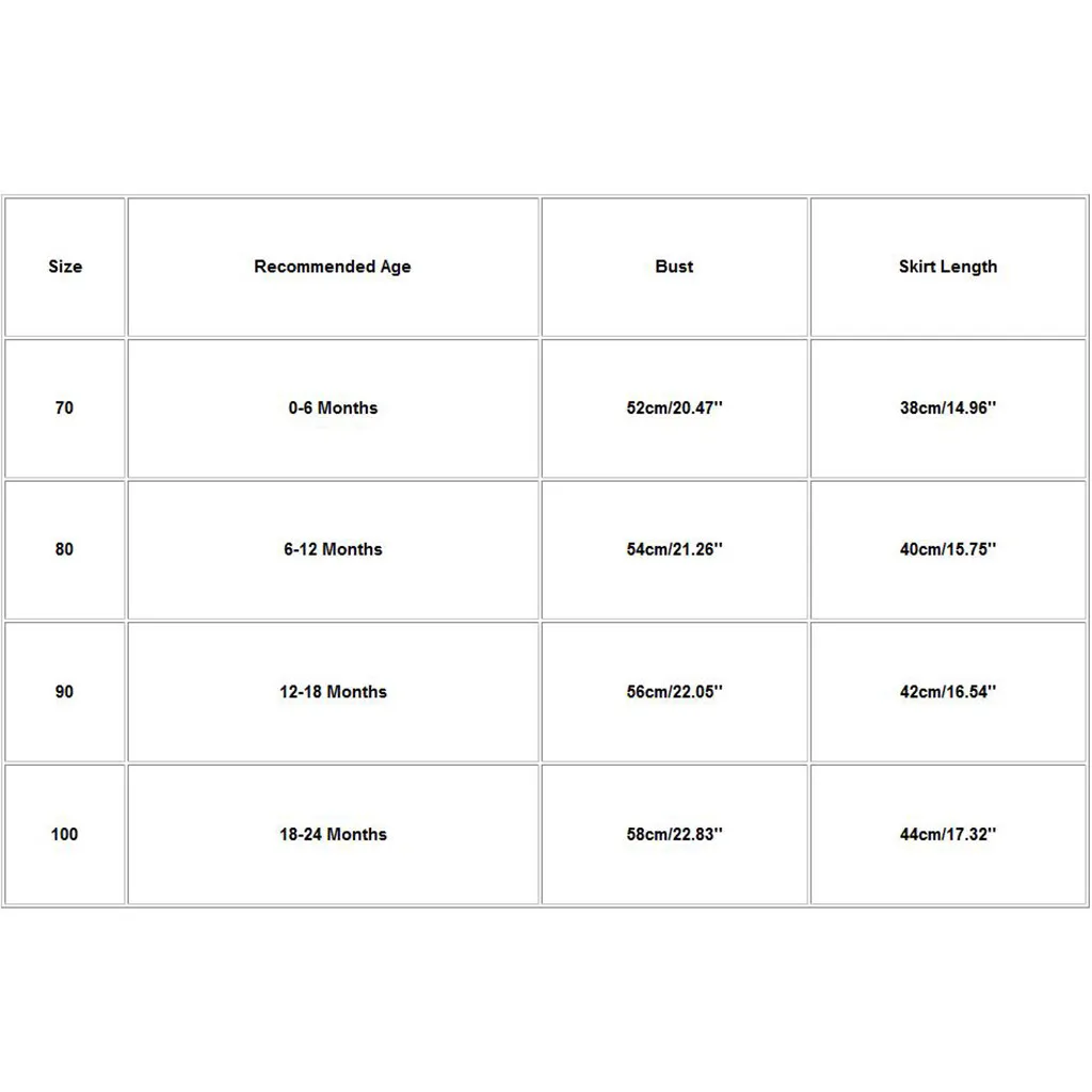 | Размеры | Рекомендуемый возраст | Обхват груди | Длина юбки |
