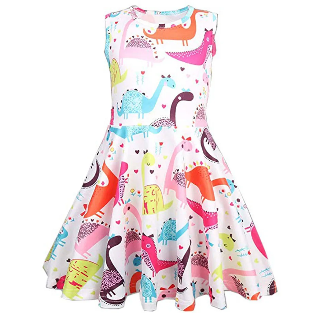Туника с рисунком динозавра для маленьких девочек; Повседневные Вечерние платья принцессы