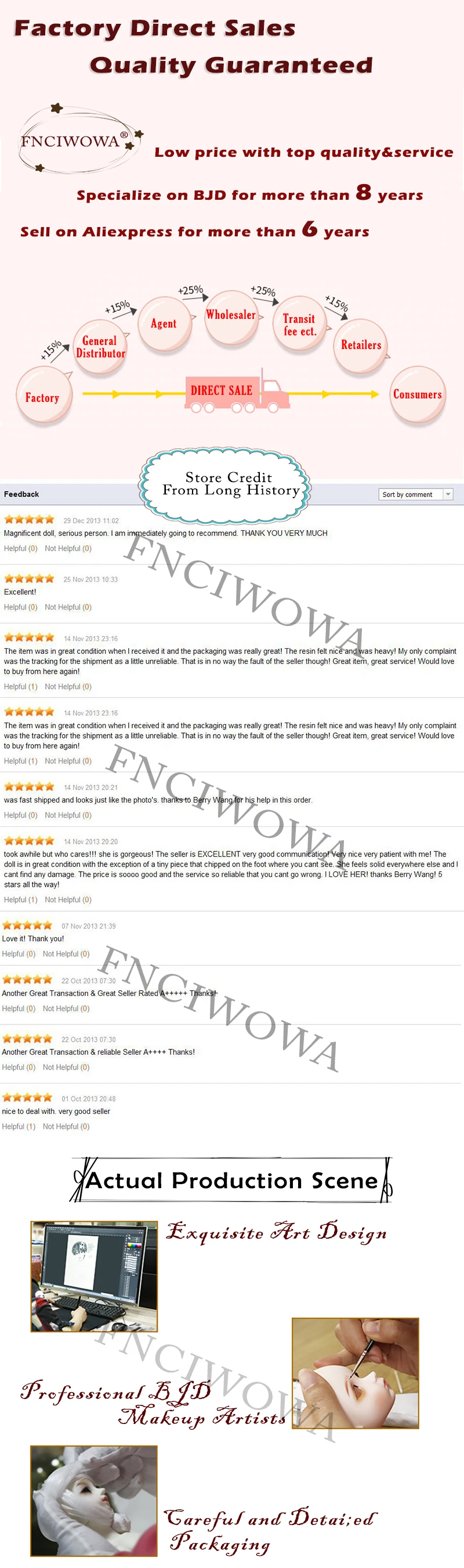 Покупатели для чтения 1. Время обработки: 3-10 дней на куклу. Посылка будет отправлена в течение 10 рабочих дней после того, как ваш платеж будет готов. Возможно задержка в несколько дней из-за большого количества заказов во время больших рекламных акций, с уважением надеюсь на ваше понимание! 2. Производство: Бесплатная Доставка по Почта Китая, электронная почта, e-Packet, Hongkong POST, EMS. Если есть некоторые методы доставки, которые вы не хотите использовать, пожалуйста, добавьте примечание в вашем заказе, мы постараемся избежать этого. Большое вам спасибо за сотрудничество! ^-^ Специальное примечание: * Для наших уважаемых клиентов в Испании, чили: о доставке, из-за некоторых правил, методы бесплатной доставки могут не отображаться правильно, если вы хотите бесплатную доставку, пожалуйста, выберите EMS или DHL, но товары только в том случае, быть бесплатно отправлены через почтовую службу «e-packet», которая работает, Hongkong Post Registered Airmail (заказное, Авиапочта), Почта Китая Registered Airmail (заказное, Авиапочта или Почта Китая посылку, искренне надеемся на ваше понимание! Заказ означает сотрудничество с этим уведомлением. * Уважаемые покупатели из Южной Африки: необходимо компенсировать разницу в цене доставки. 3. Время доставки: Почта Китая посылок из Гонконга: доставка займет 15-60 рабочих дней. Почтовую службу «e-packet», которая работает/Почта Китая Airmail (заказное, Авиапочта): 15-35 рабочих дней. EMS: 5-10 рабочих дней. Отправке курьерскими службами (DHL,UPS, Fedex...): 3-7 рабочих дней. Пожалуйста, обратите внимание, что экспресс-доставка может привести к налогу на импорт, который родится у покупателей. Покупатели отвечают за все таможенные пошлины. Мы постараемся сделать все возможное, чтобы товар прибыл вовремя. Но мы не можем гарантировать время доставки на все международные перевозки, так как иногда возможны задержки, которые могут возникнуть в связи с пересекающимися курьерами, погодой, местная таможня в каждой стране и так далее, за эту ситуацию, которая находится вне нашего контроля, мы высоко ценим ваше понимание и доброту! Мы не возвращаем стоимость доставки за отклоненные поставки.