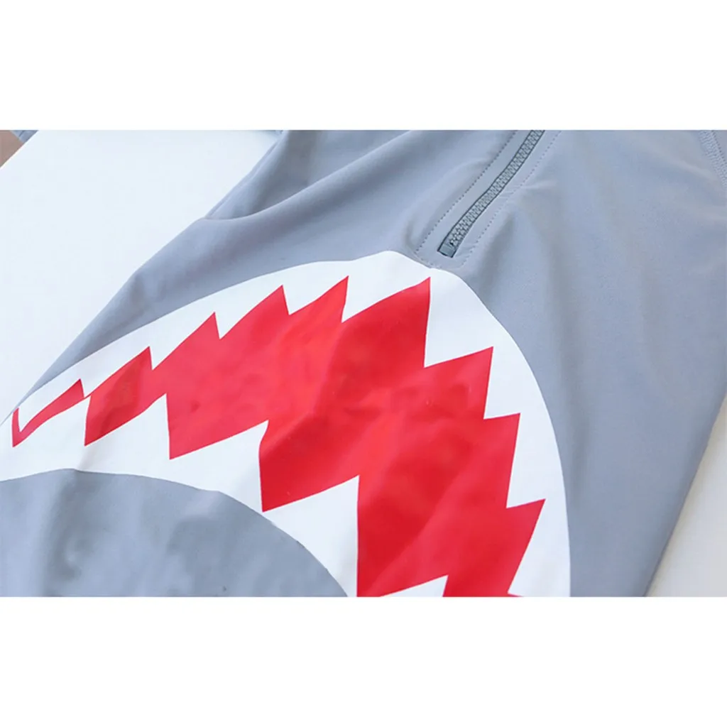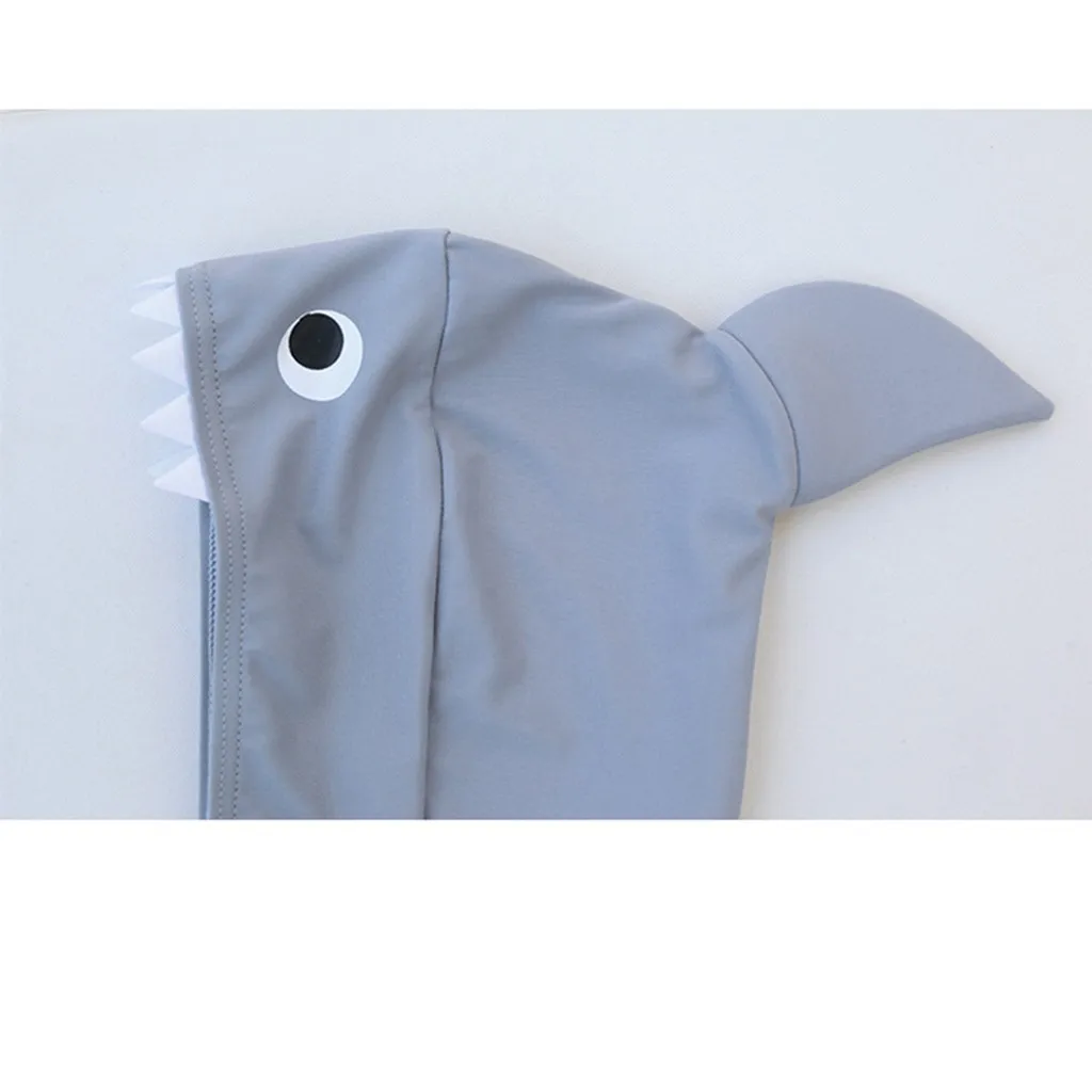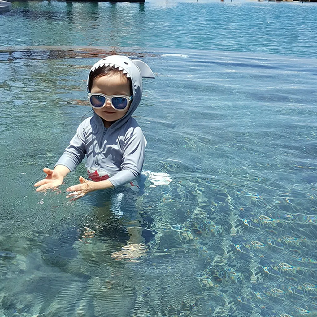 Детский пляжный слитный купальник с капюшоном и длинными рукавами с рисунком акулы