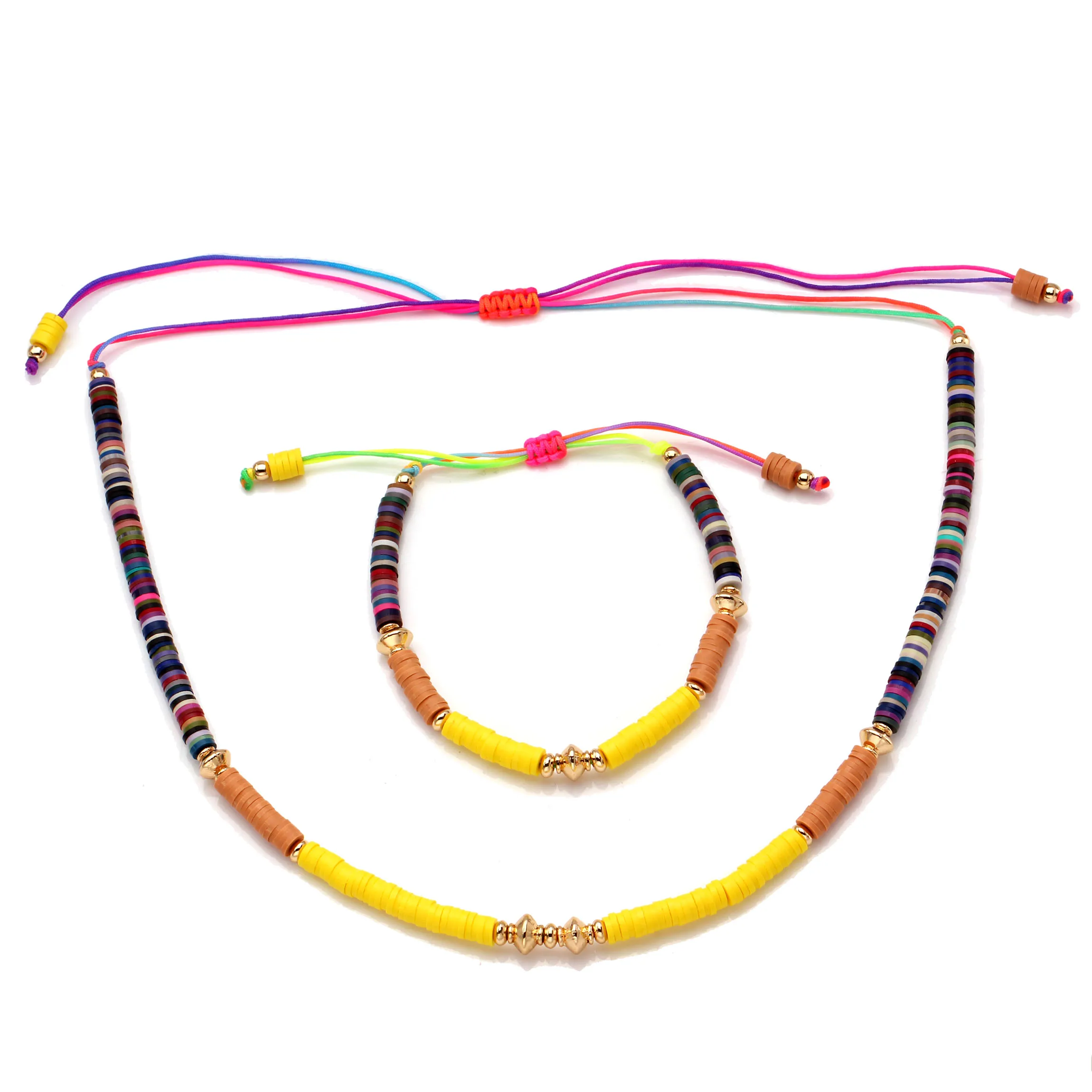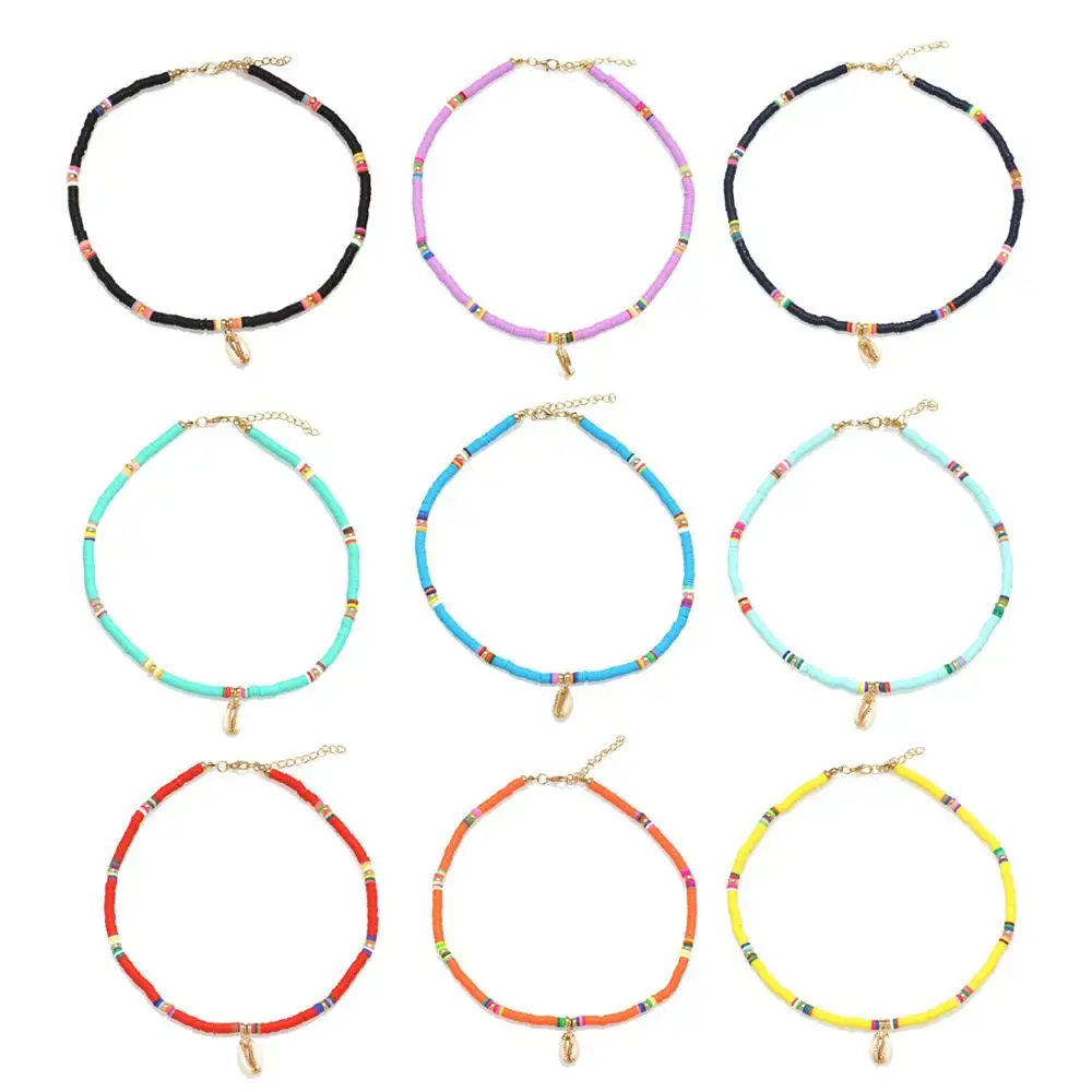 Бохо Полимерная глина Heishi бусы Cowrie Seashell регулируемое ожерелье 2020 новый модный Slipknot многоцветный чокер набор ювелирных изделий подарок