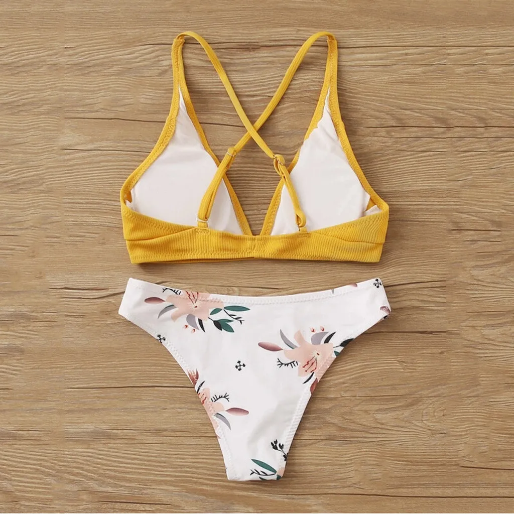 Женский Двухсекционный цветочный принт пуш-ап мягкий бюстгальтер пляжный комплект бикини купальник