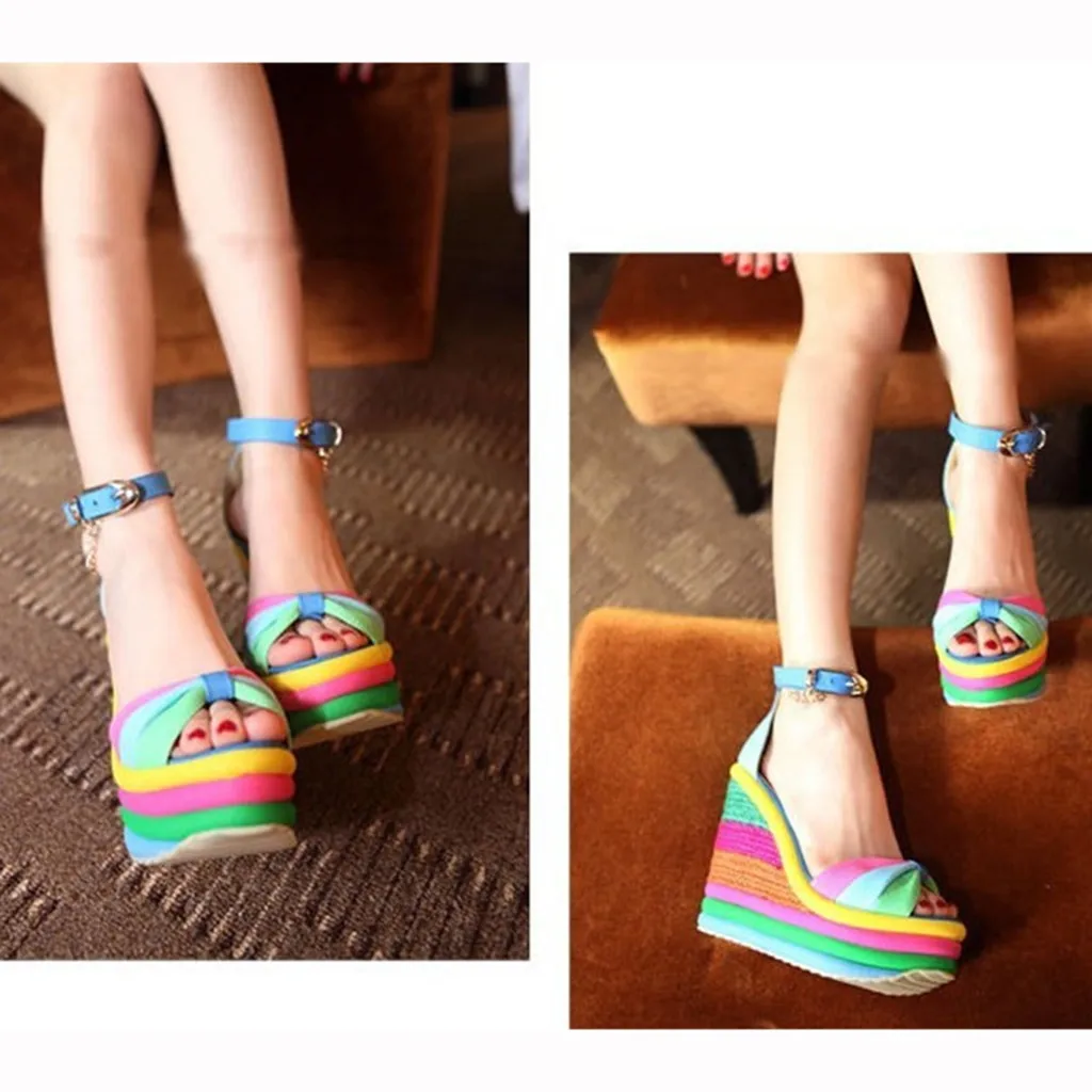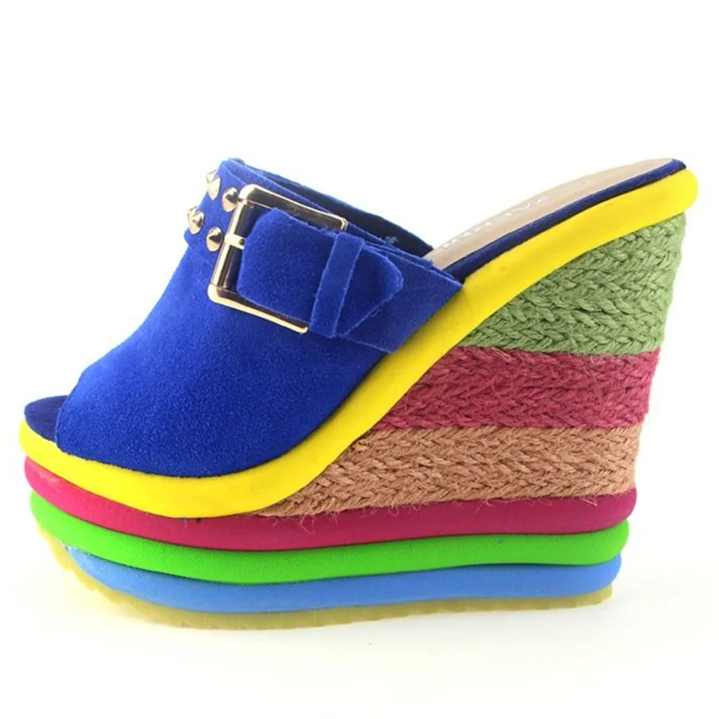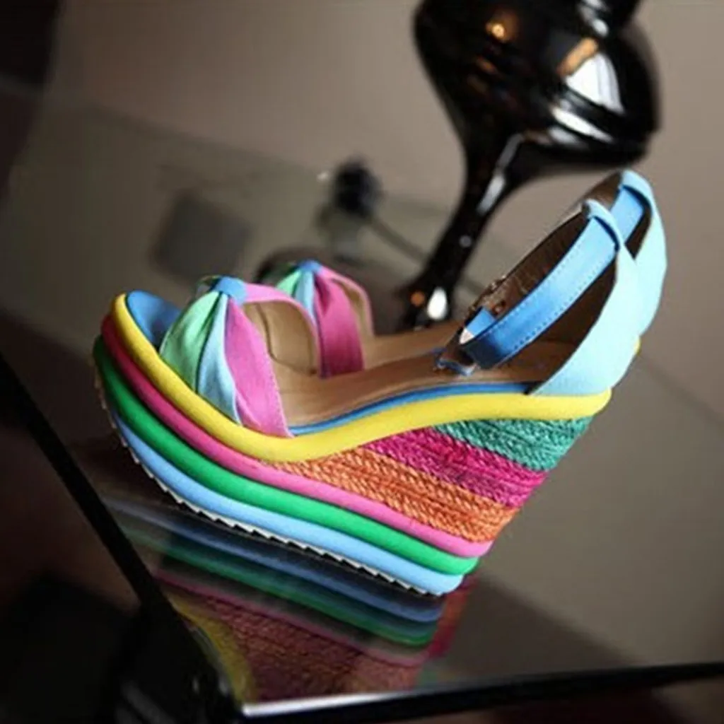 Женские разноцветные сандалии на танкетке в стиле пэчворк; Римская обувь с открытым носком