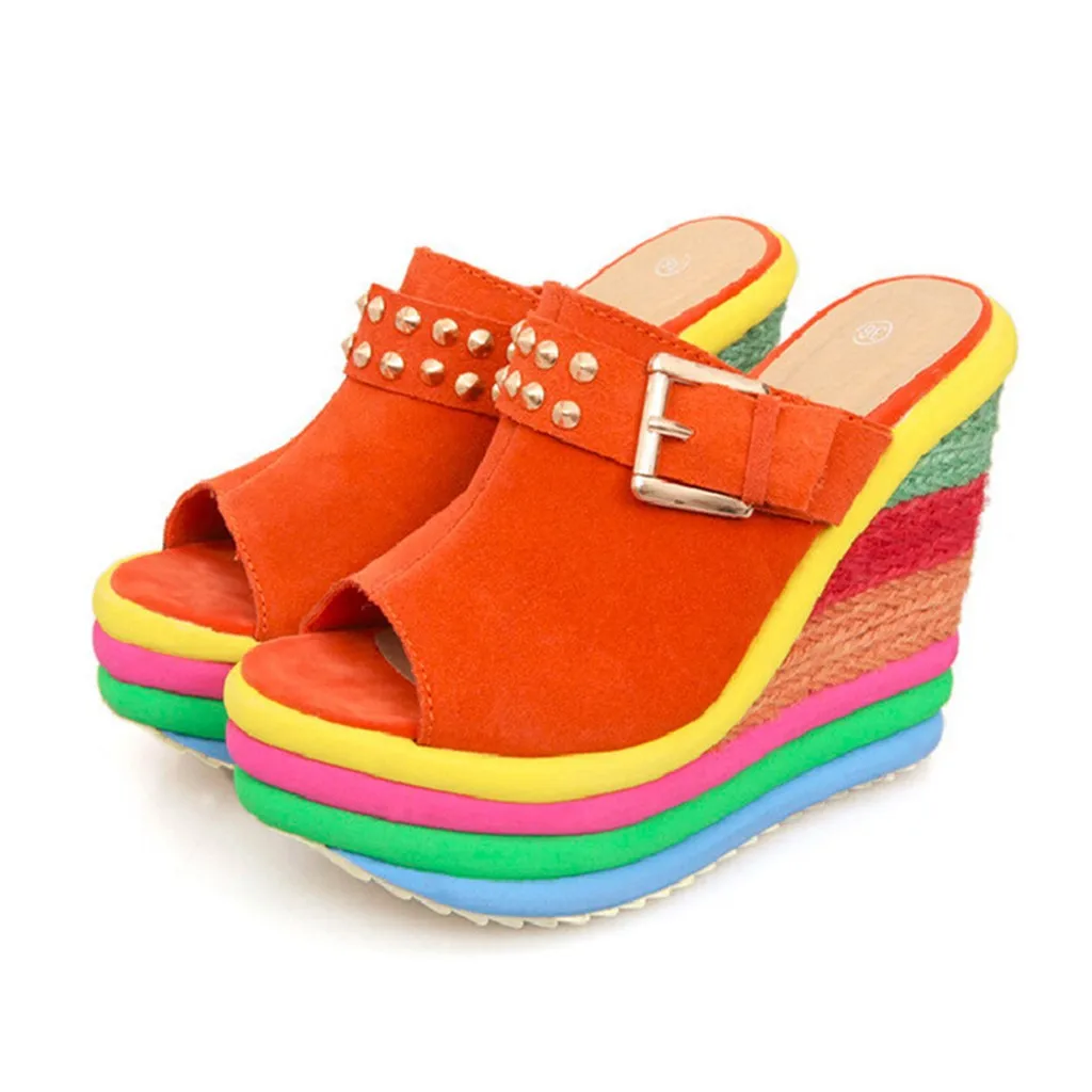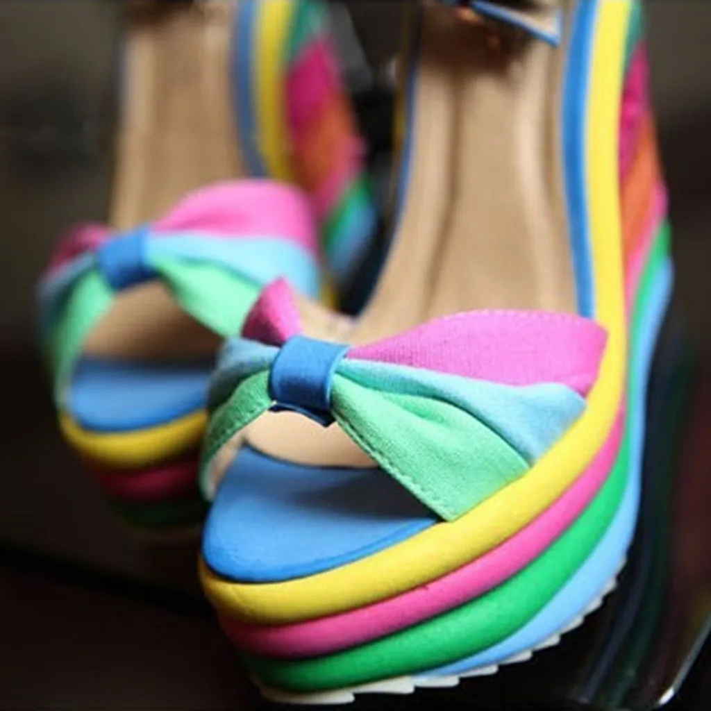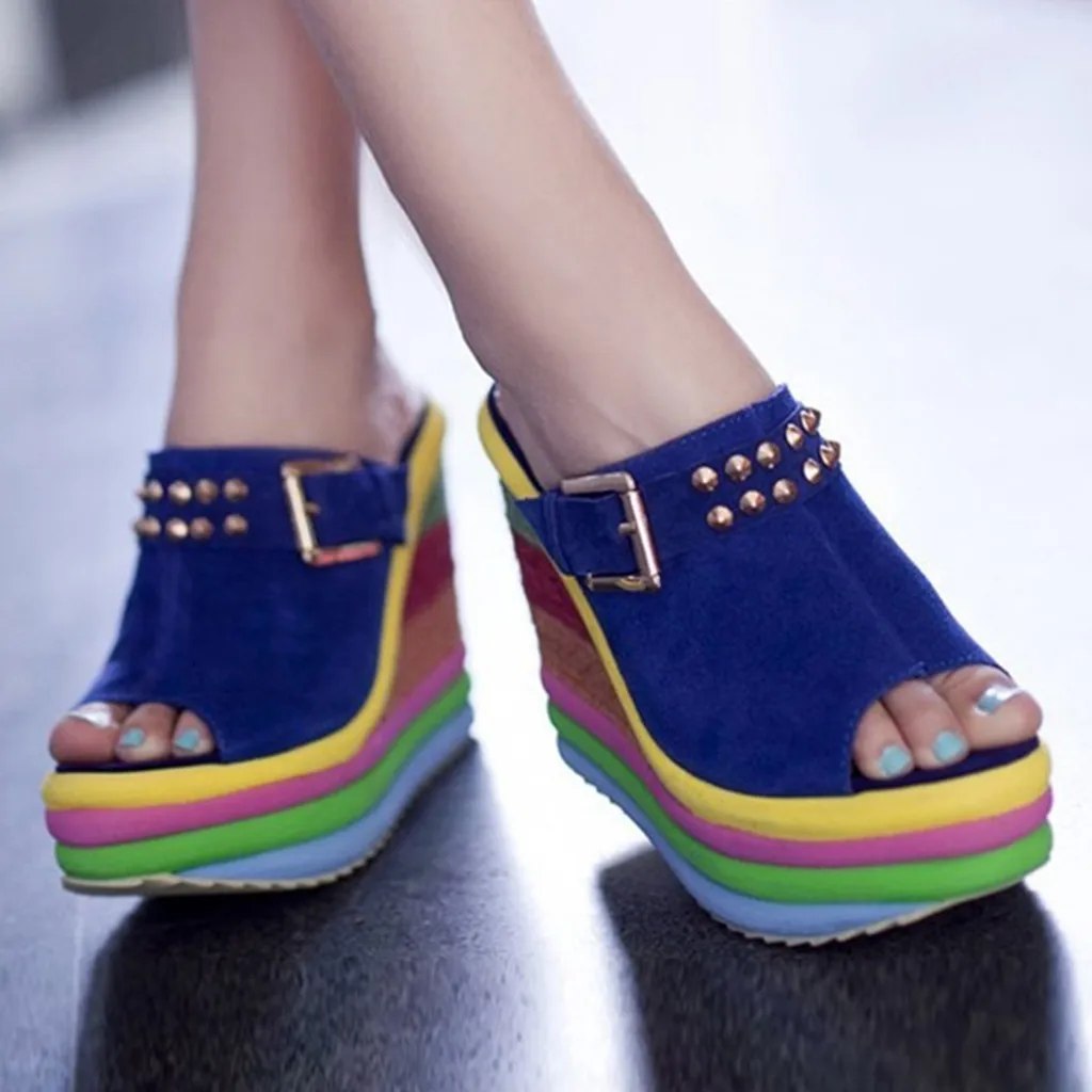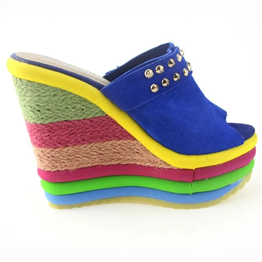 Женские разноцветные сандалии на танкетке в стиле пэчворк; Римская обувь с открытым носком