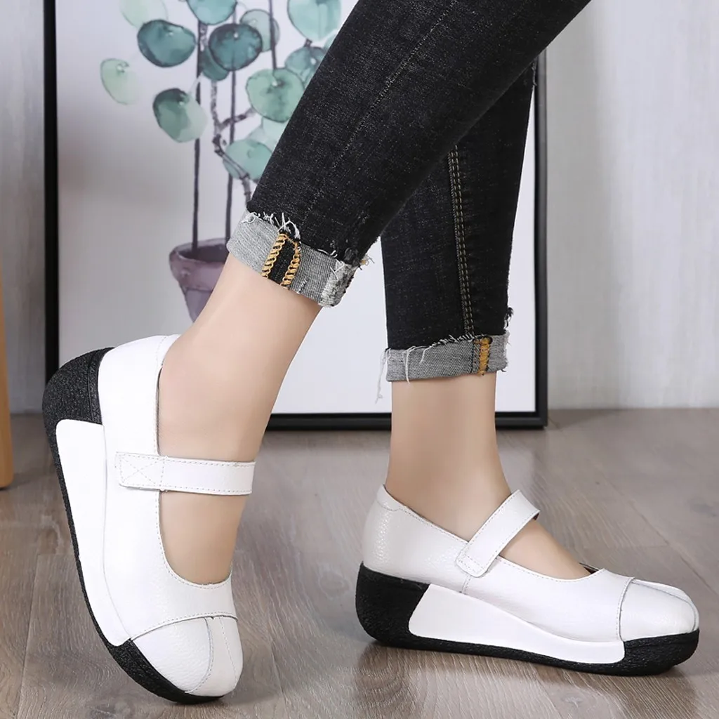 Women Outdoor Shoes Solid Color Ancient Platform-Bottom Heel Shoes Casual Shoes