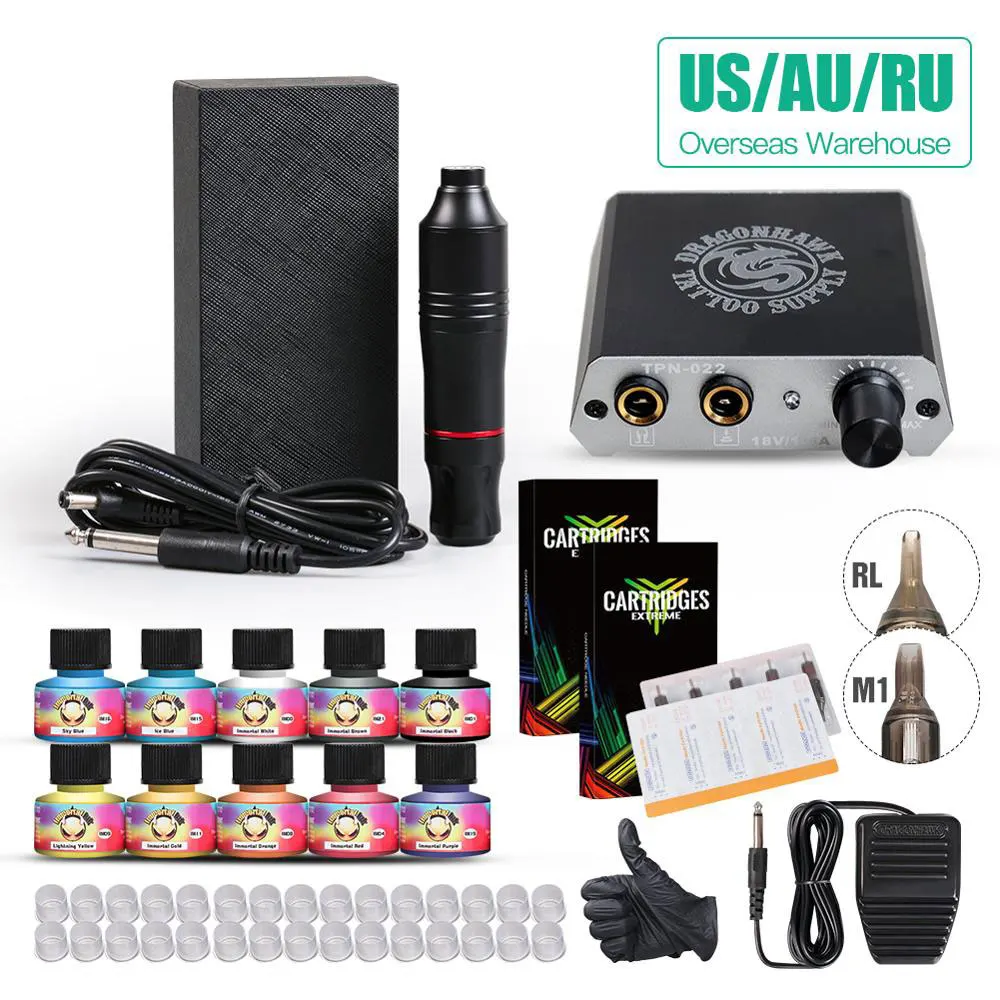 Полный Набор татуировок, моторная ручка, машина, США, цветные чернила, комплект питания, иглы, принадлежности