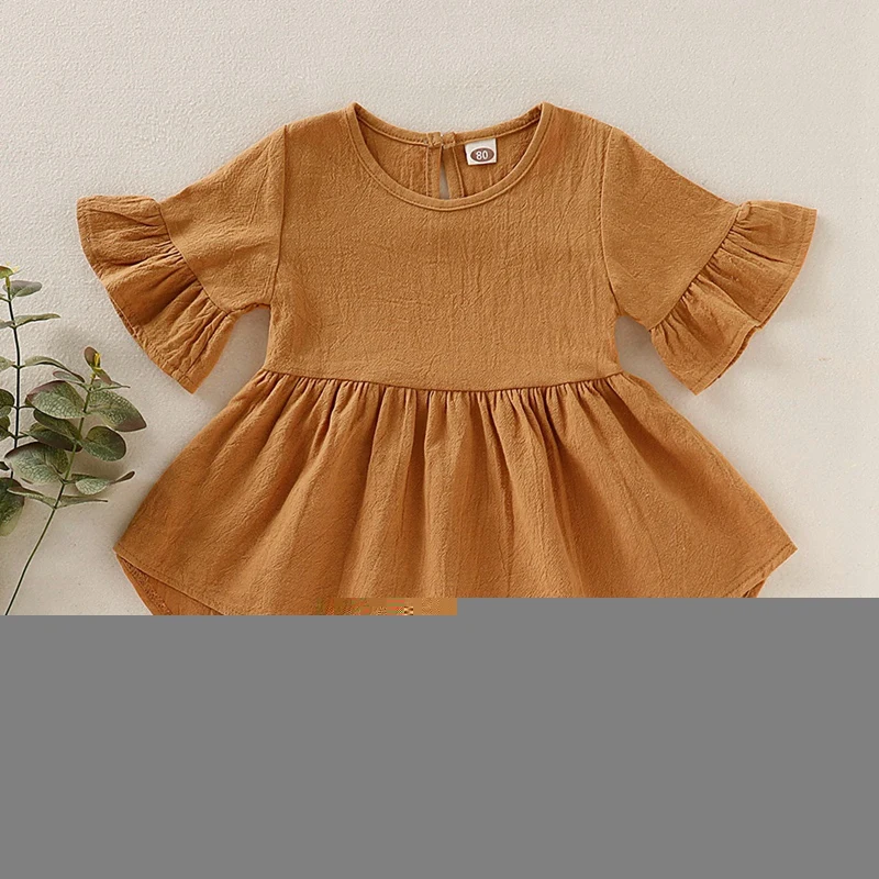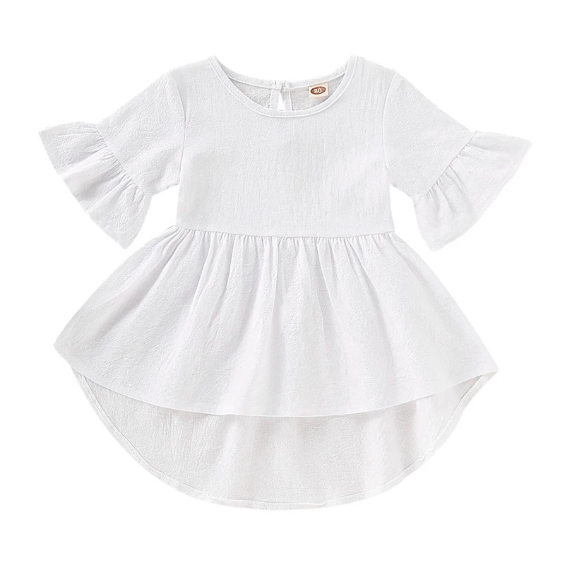 Необычный дизайн; Однотонное милое платье с расклешенными рукавами для девочек; Это сделает ваших детей милыми и привлекательными