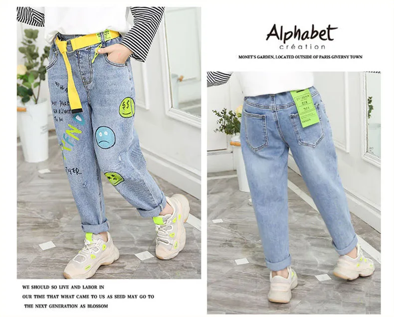 2017 детские джинсы для девочек в стиле граффити узкие брюки одежда детская