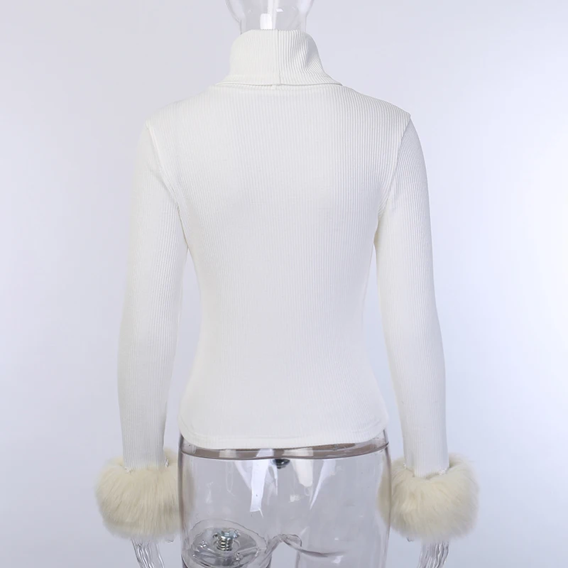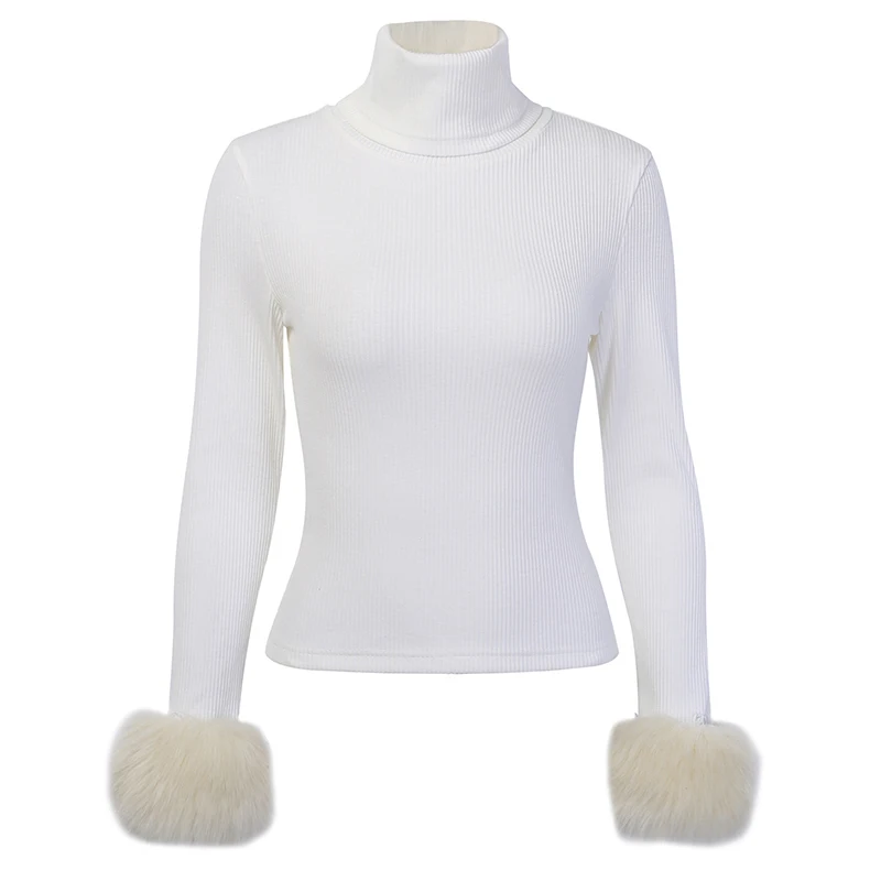 LaStylisher трикотажная женская футболка в рубчик с длинным рукавом белая эластичная Лоскутная женская кофта с пушистым рукавом мягкая тонкая элегантная теплая рубашка