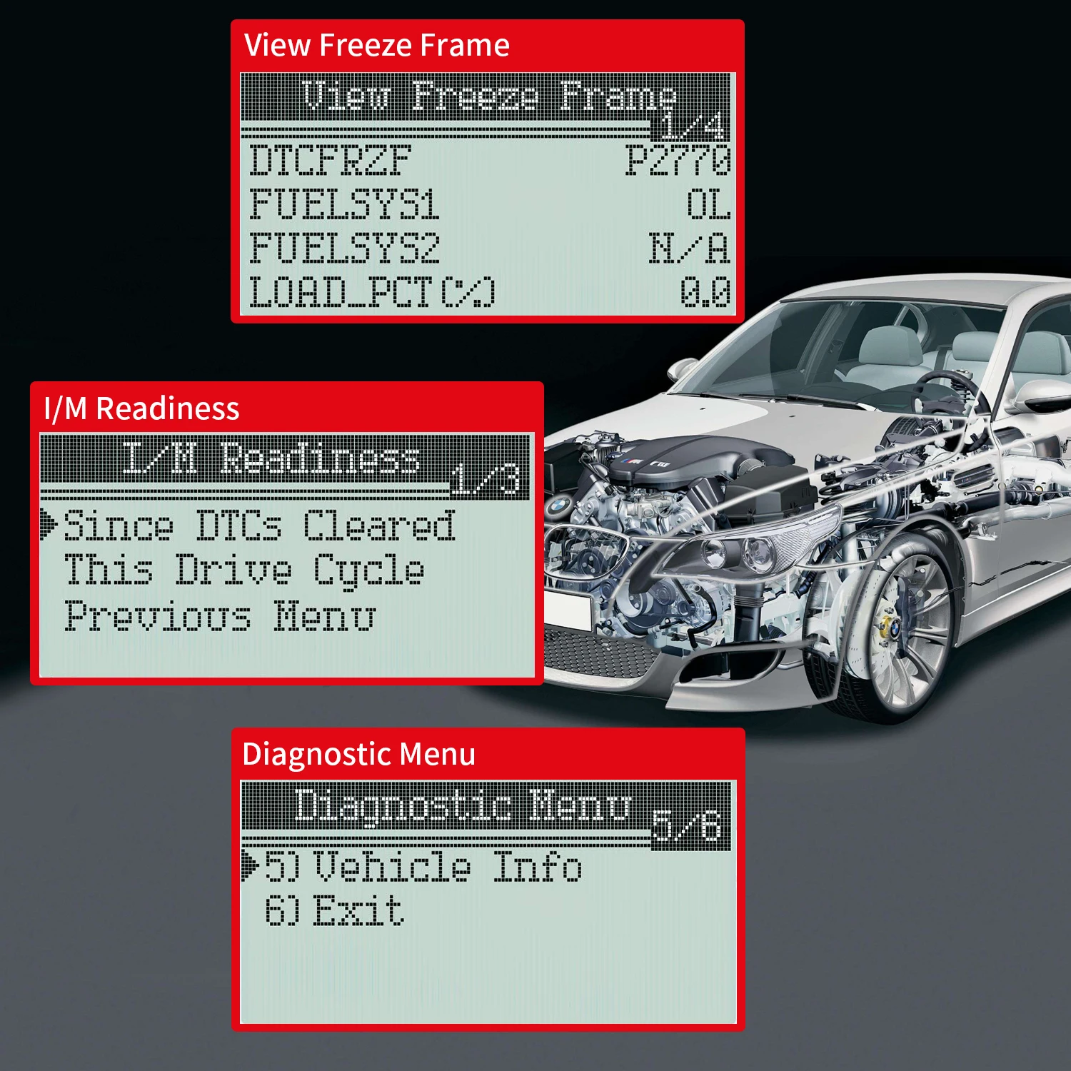 Четкость состояния, чтобы пройти проверку Smog: этот диагностический сканер автомобиля поставляется с функцией I/M готовности для проверки работы системы выбросов на O-B-D2 совместимых транспортных средствах. Он включает в себя определенное количество мониторов, таких как противопожарный монитор, монитор топливной системы, комплексный монитор компонентов, датчики O2, EVAP системы и т. Д., делая этот O-B-D2 инструмент сканирования отличным инструментом сканирования, чтобы помочь получить ваш автомобиль готов пройти ежегодную проверку смога.