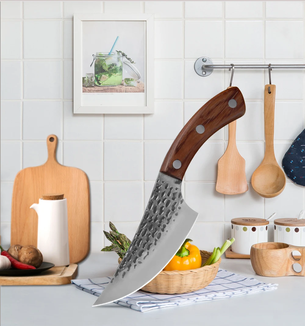XYj 5,5 ''кухонный нож шеф-повара ручной работы кованый нож оболочка полное лезвие острое дерево изгиб ручка нож для приготовления пищи открытый аксессуар