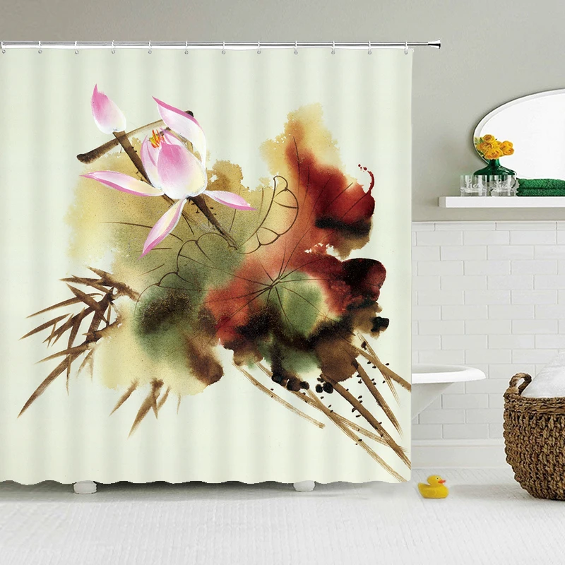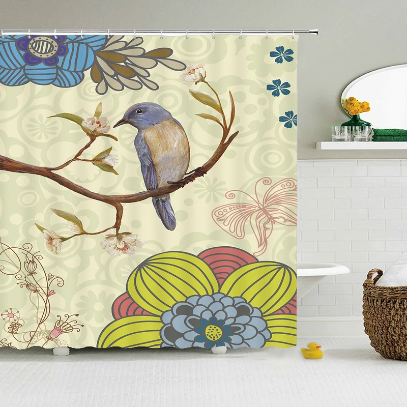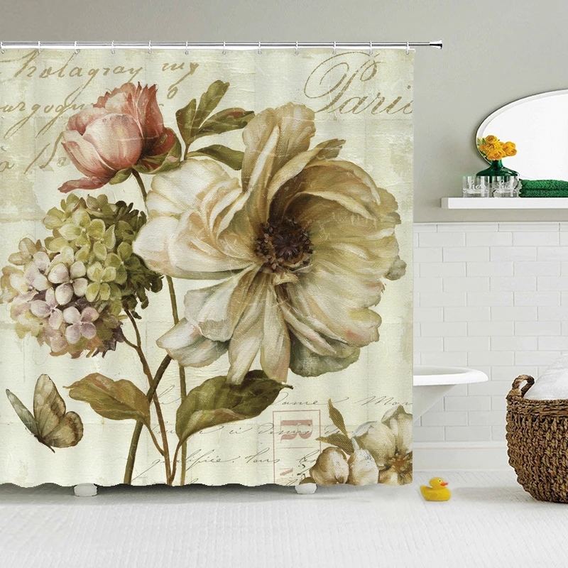 Европейский ретро 3D печать цветы занавески для душа с ванной водонепроницаемый полиэстер для ванной занавески ткань